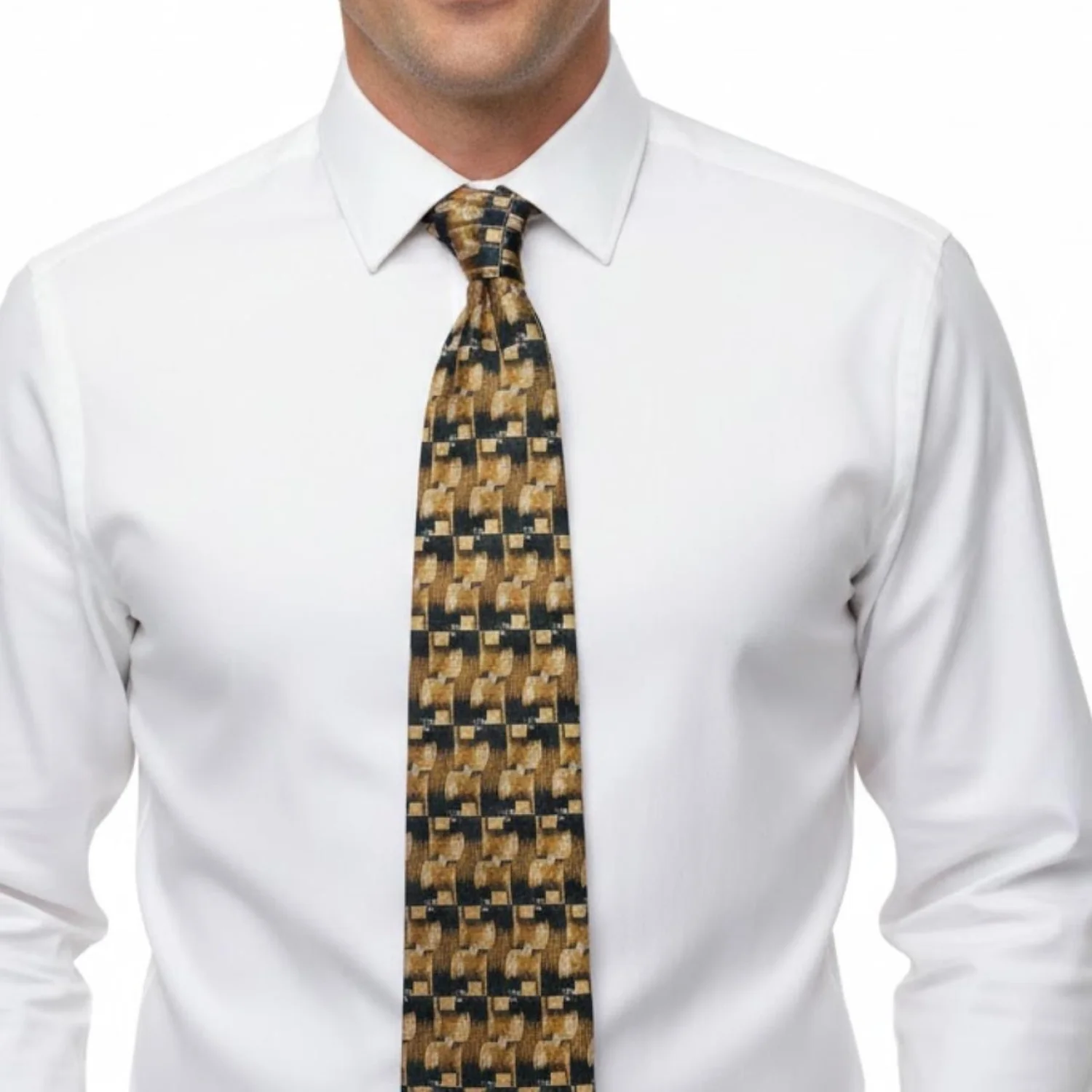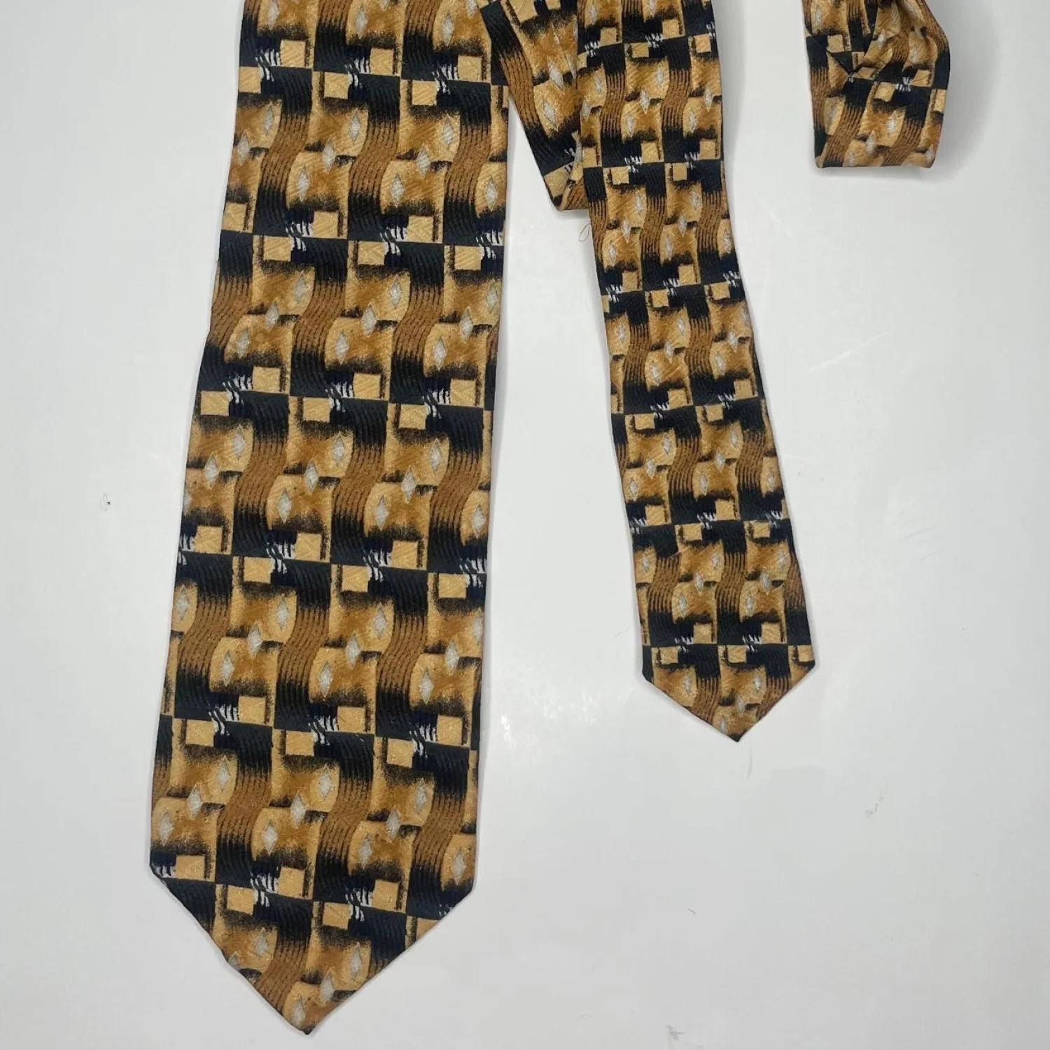 Vintage 90s J.Z. Richards Gold Geometric Silk Tie