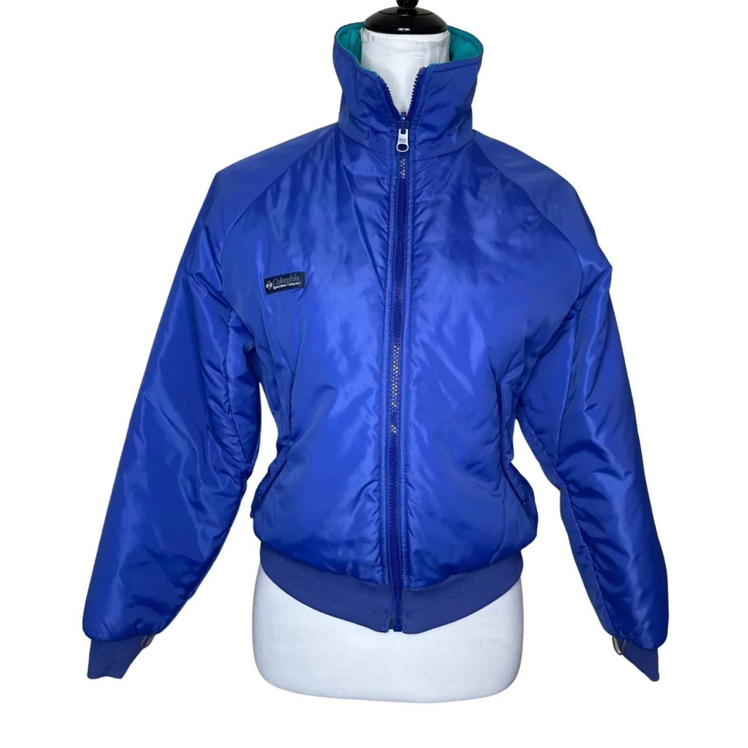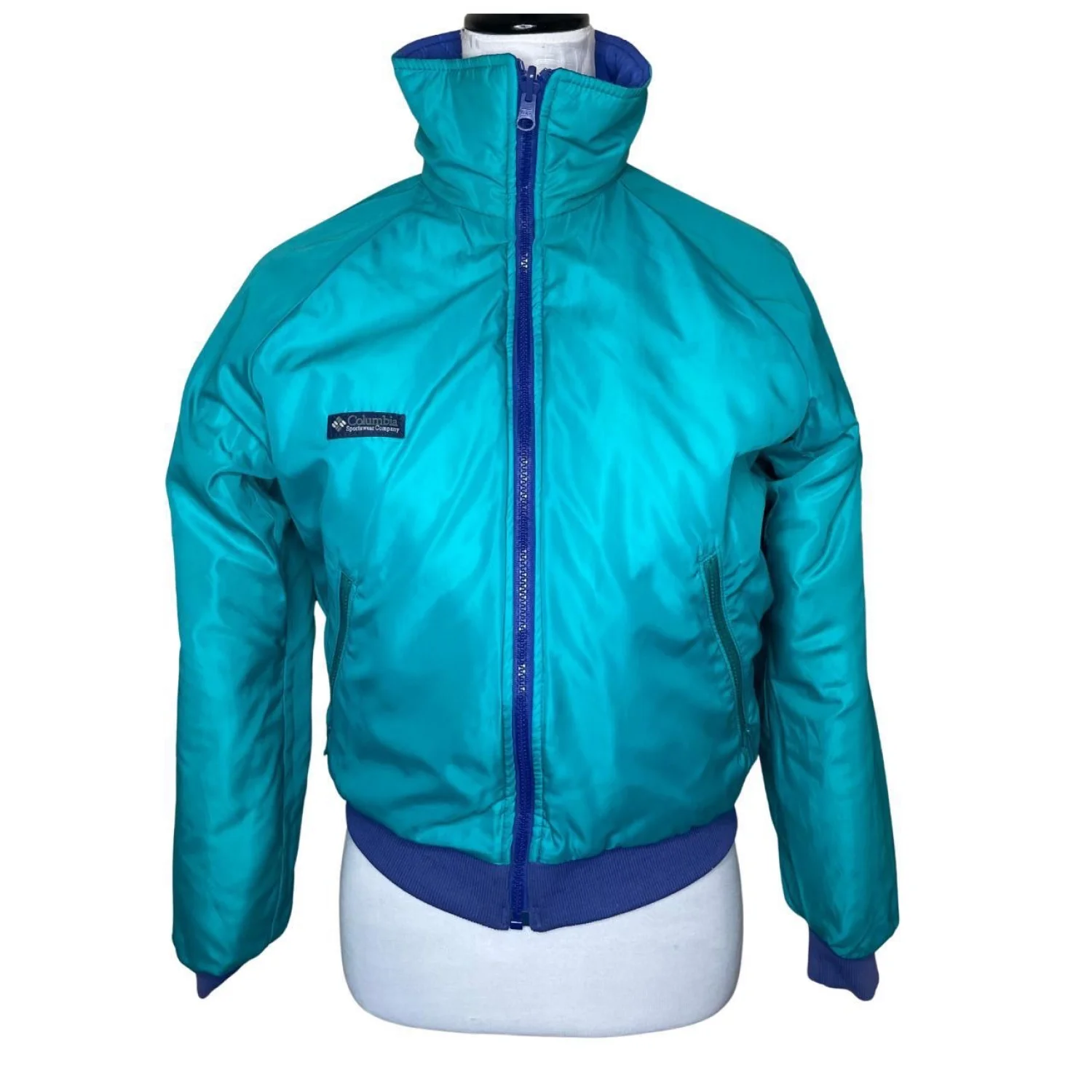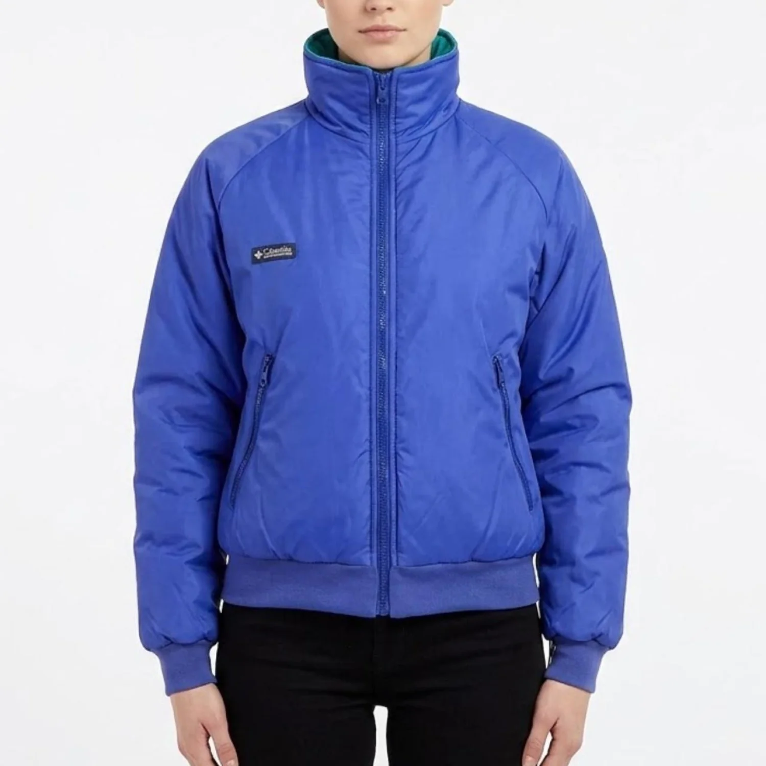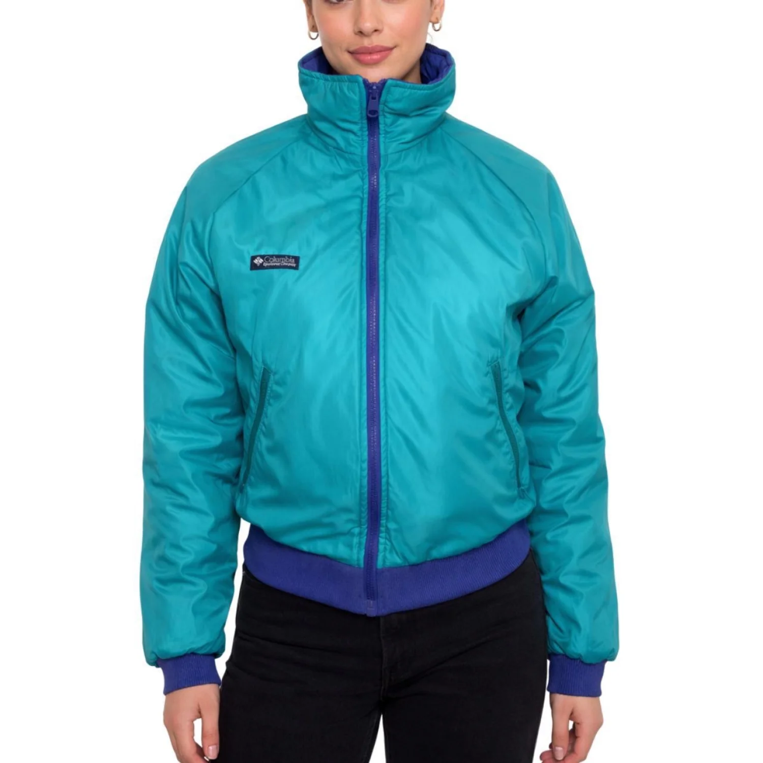 Vintage Columbia Reversible Jacket Womens M Blue Purple 90s Thinsulate Bomber Features: 🛸 THE ULTIMATE 90s VIBE 🛸 Reversible Columbia bomber jacket in sick teal and purple colorway. Super cozy Thinsulate lining. Two looks in one—flip it depending on the fit. Perfect for that gorpcore/retro aesthetic. • Style Profile: 90s, Retro, Gorpcore, Streetwear, Outdoor, Vintage, Colorblock, Athleisure, Winter, Reversible • Flaws: No Holes, stains, or tears (Excellent pre-owned condition) • All measurements are approximate PTP: 20" Length: 21.5" Sleeve Length: 25.5" Happy to answer your questions! Super Fast Shipper!