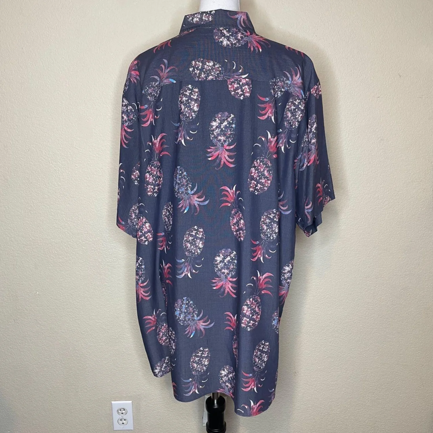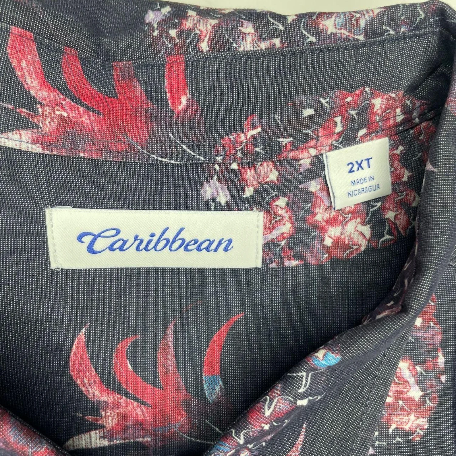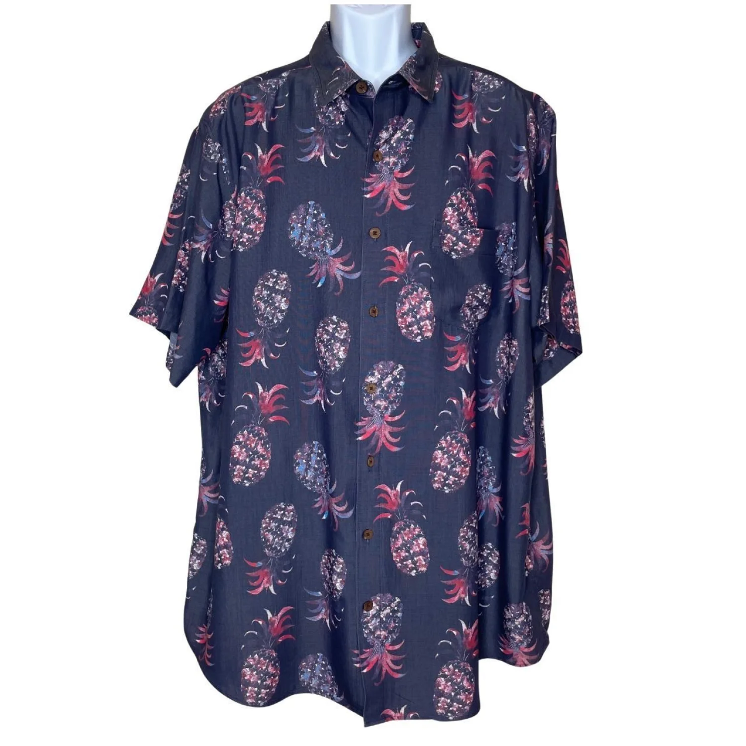 Vintage Style Caribbean Pineapple Silk-Feel Shirt 2XT Features: Stay cool and stylish in this ultra-soft Caribbean button-down. Featuring a vibrant red and purple pineapple print on a navy ground, this shirt is made from a premium modal blend for a silky, breathable feel. Perfect for vacations, cruises, or summer parties. Features a front chest pocket and a relaxed tall fit. • Style Profile: Tropical, Hawaiian, Coastal, Beachy, Island, Resortwear, Cabana, Summer, Big and Tall, Soft, Breathable, Relaxed Fit, Vacation, Dadcore, Retro, Nautical, Pineapple Print, Modal Blend, Cruise Wear, Luau • Flaws: No Holes, stains, or tears (Excellent pre-owned condition) • All measurements are approximate PTP: 27" Length: 35.5" Happy to answer your questions! Super Fast Shipper!