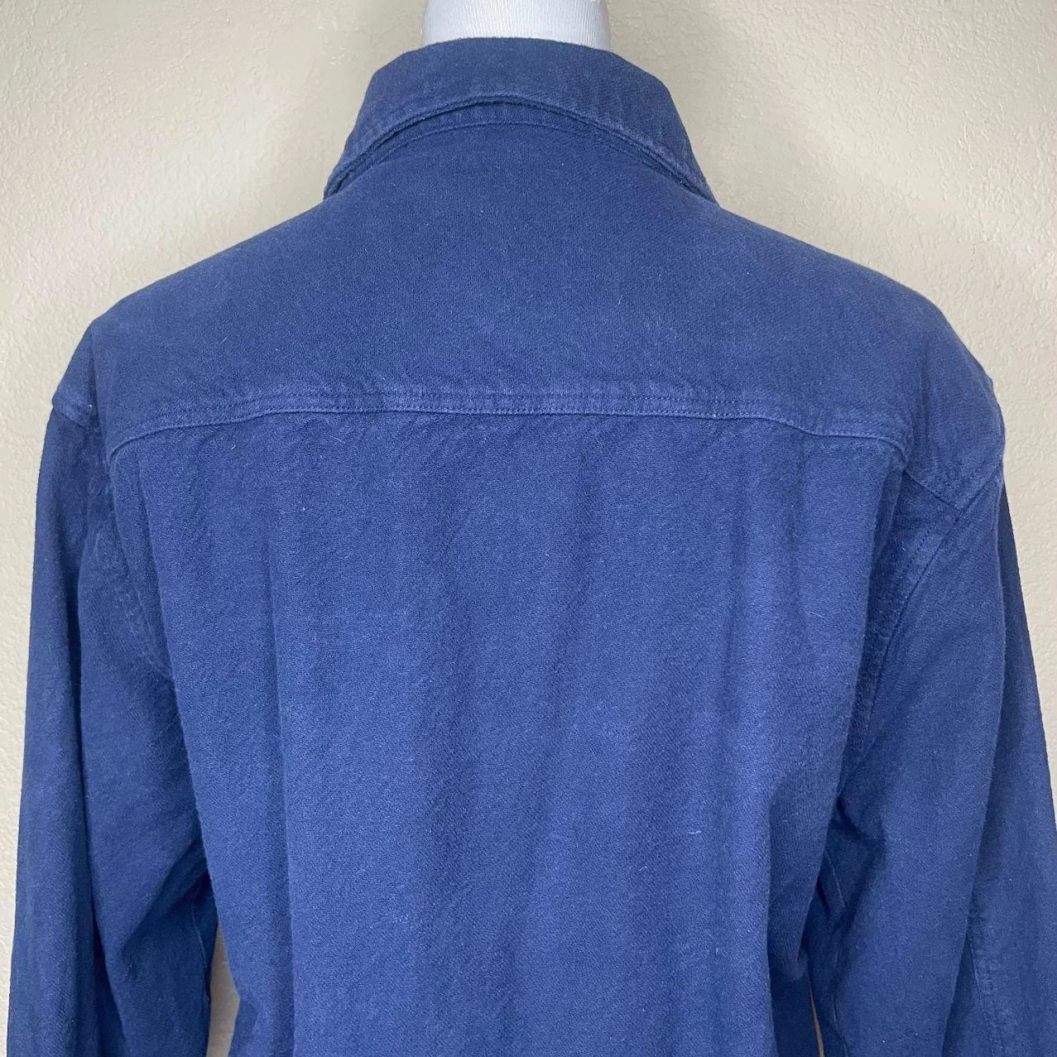 Offers Welcomed🎉 Features: Elevate your casual wardrobe with this classic navy blue button-up!. Made from 100% cotton, this piece features a heavy, durable feel that works perfectly as a standalone shirt or a lightweight "shacket" layer. • Style Profile: Workwear, Americana, Minimalist, Classic, Gorpcore, Granpda Style, Normcore, Coastal Boy, Casual, Outdoor • Flaws: No Holes, stains, or tears (Excellent pre-owned condition) • All measurements are approximate PTP: 25' Length: 27.5' Sleeve Length: 22.5' Happy to answer your questions! Super Fast Shipper!