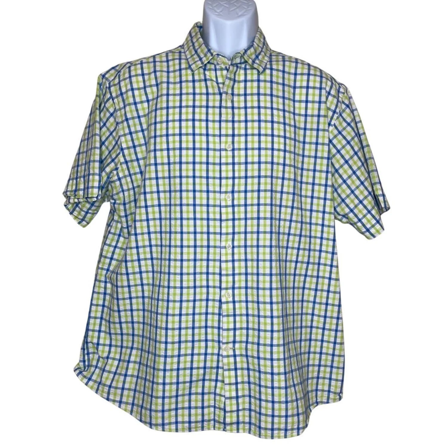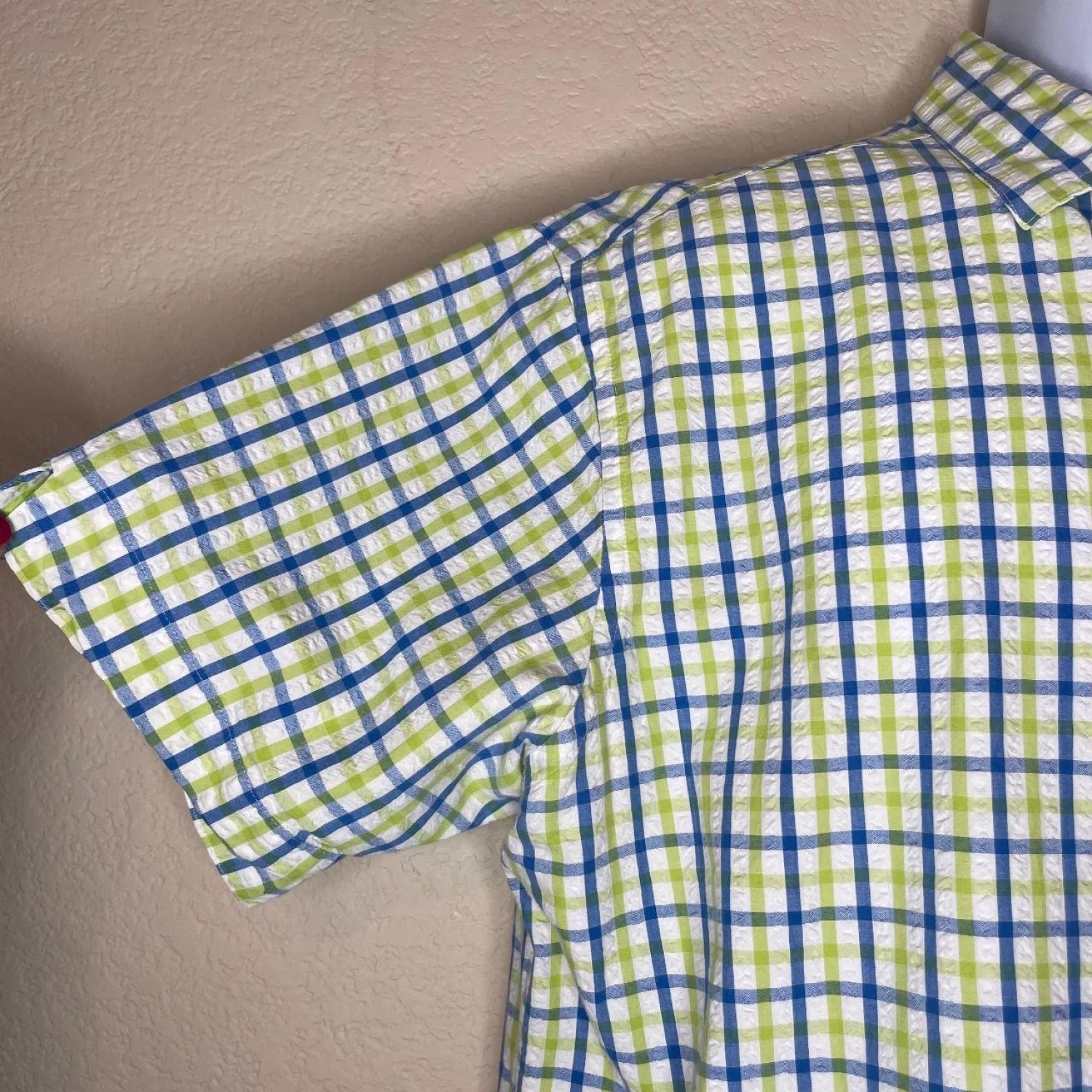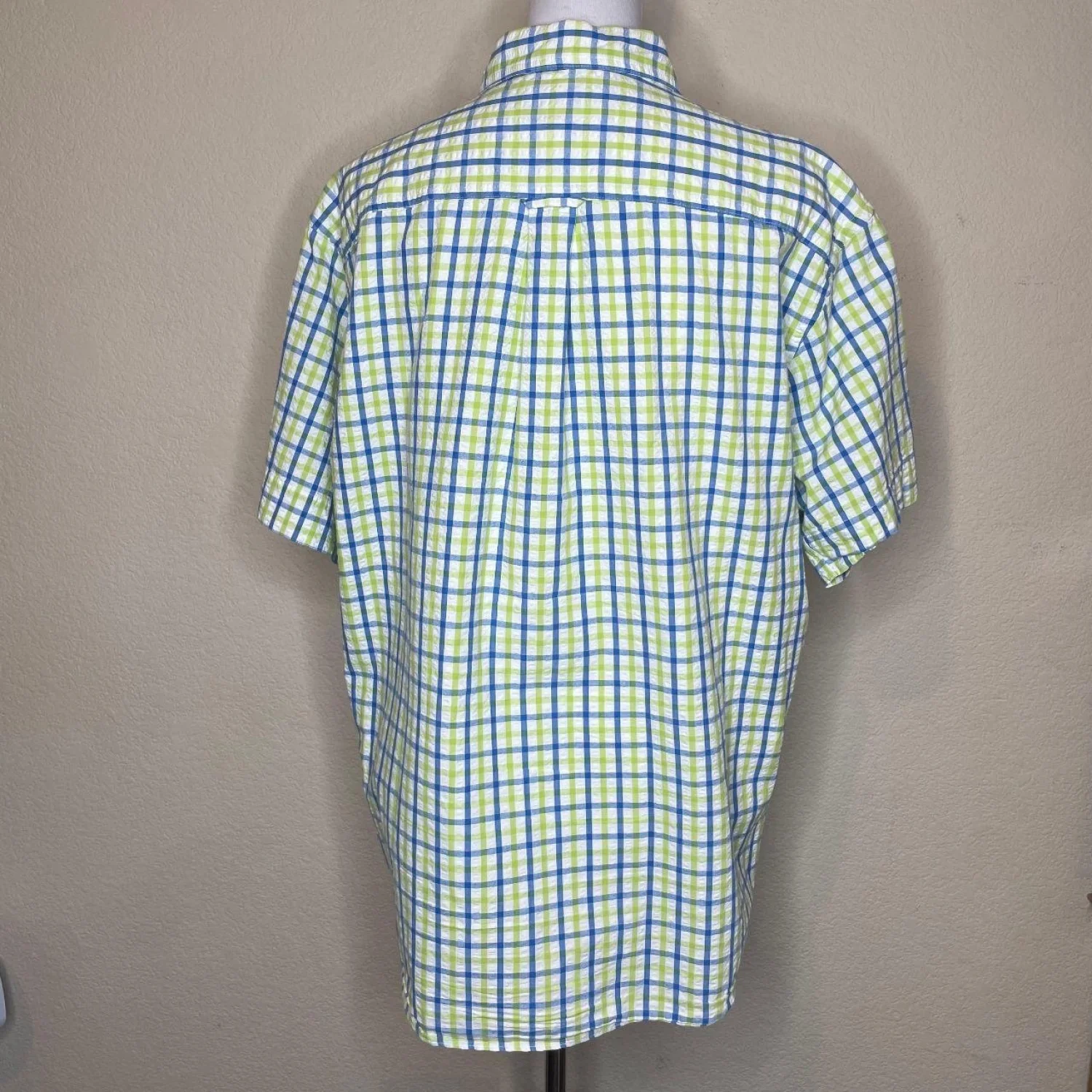 Vintage Style Seersucker 100% Cotton Plaid Button Down π¦π Features: The ultimate summer shirt. This John Bartlett Consensus button-up features a sick blue and lime green "puckered" seersucker texture. Gives major coastal / old money / indie vibes. 100% cotton so itβs actually breathable. Pair with baggy chinos or 5" inseam shorts for the full look. β’ Style Profile: Preppy, Coastal, Dadcore, Seersucker, Summer, Nautical, Grandpacore, Pastel, Indie, Picnic β’ Flaws: No Holes, stains, or tears (Excellent pre-owned condition) β’ All measurements are approximate PTP: 24.5' Length: 28.5' Happy to answer your questions! Super Fast Shipper!