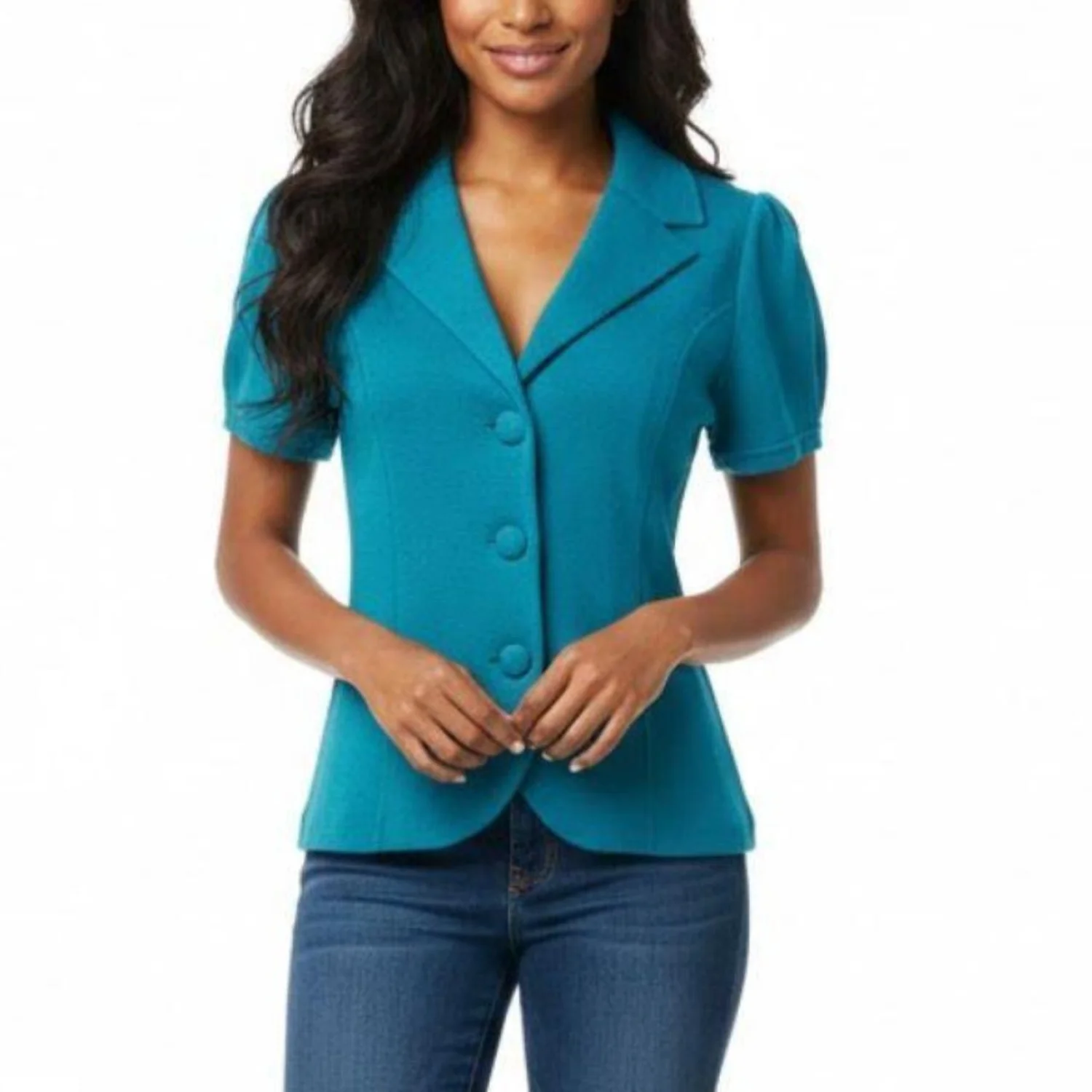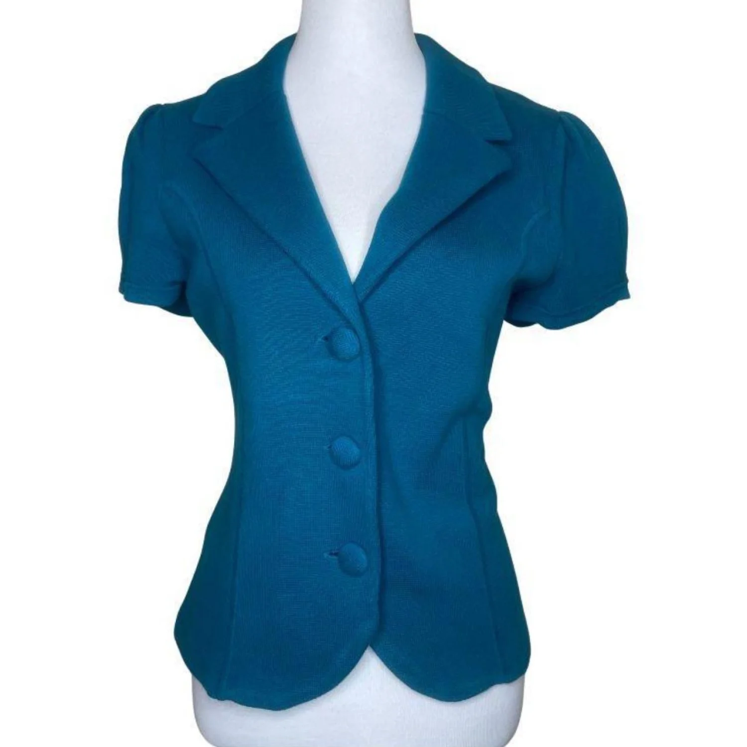 Vintage Style Teal LOFT Puff Sleeve Cardiganer Size Medium