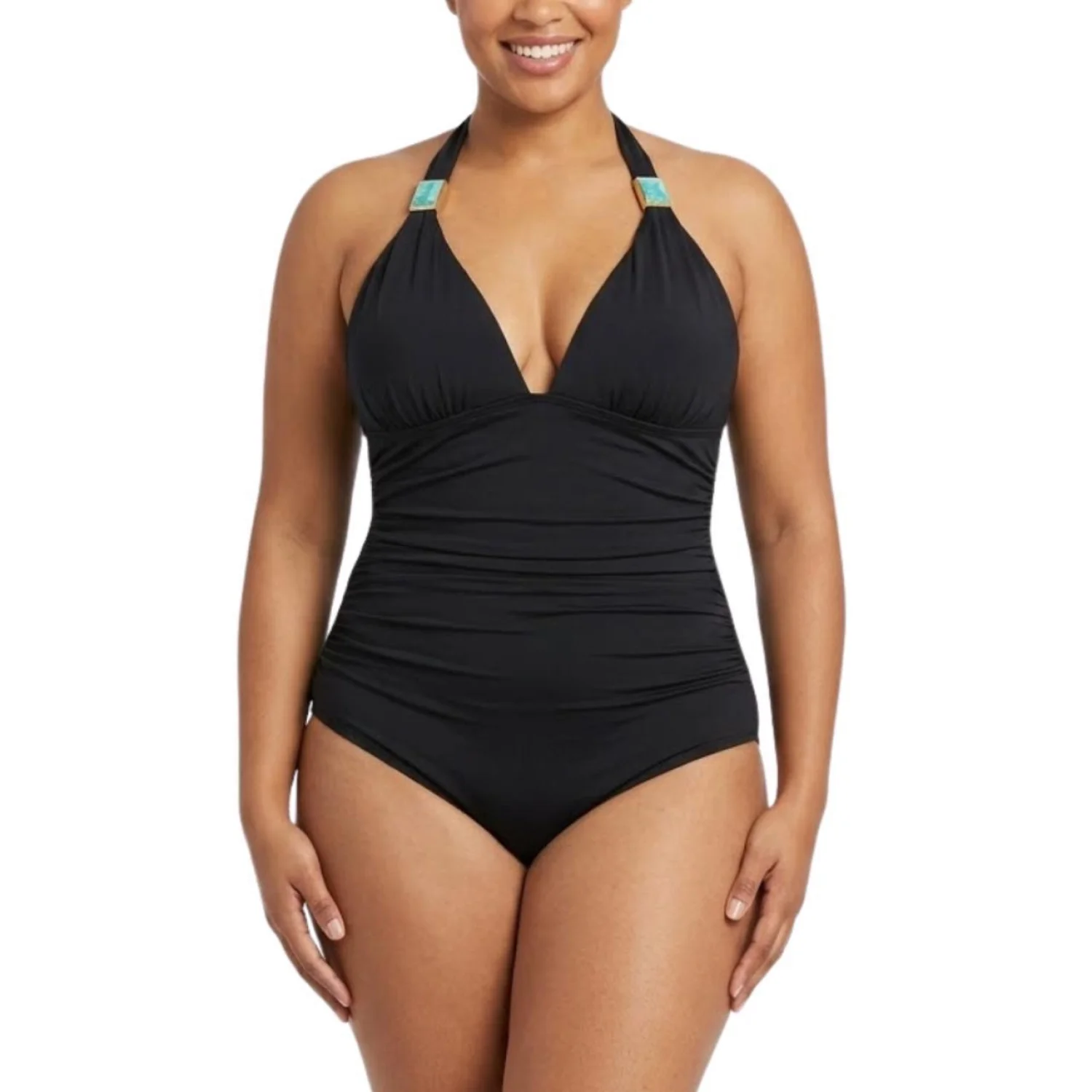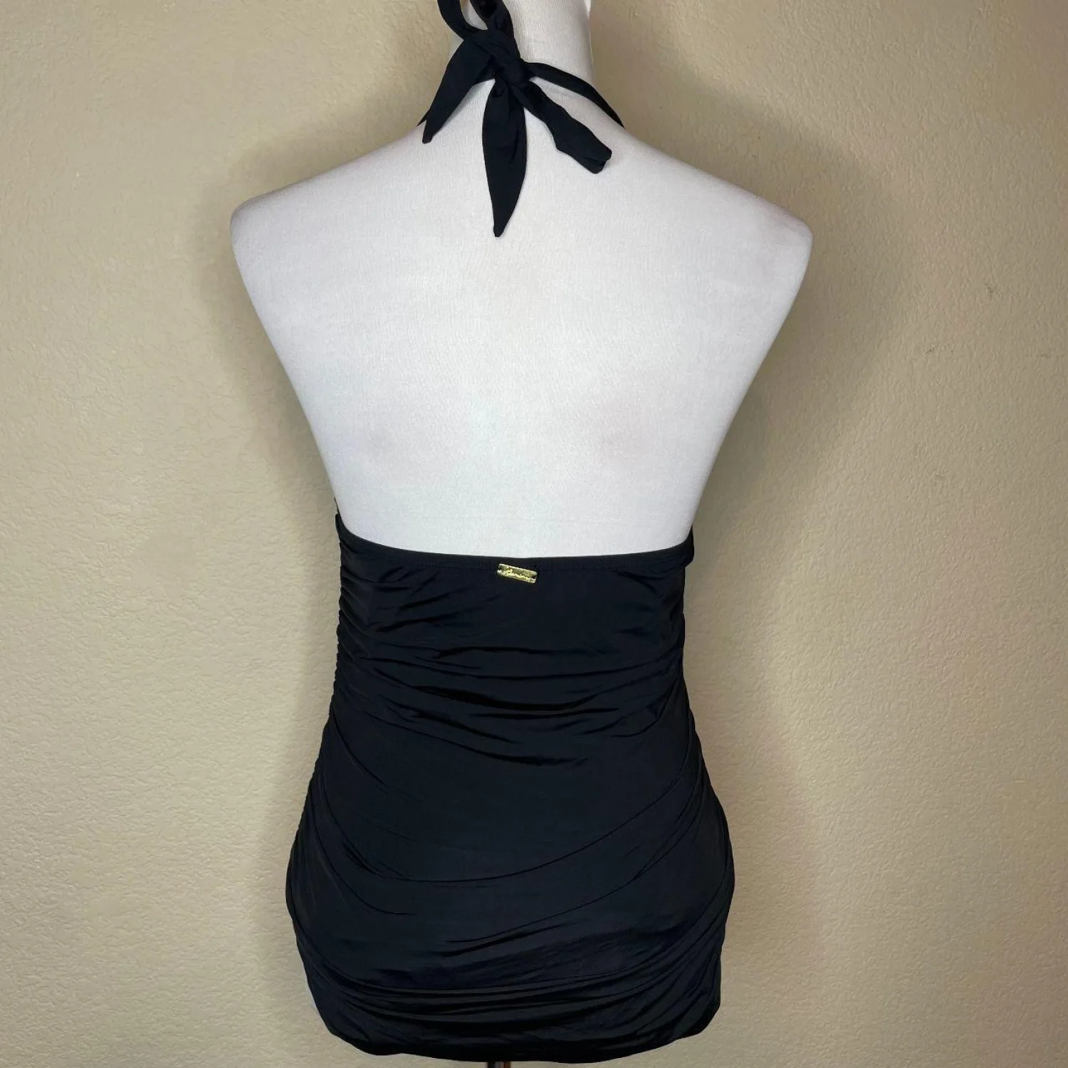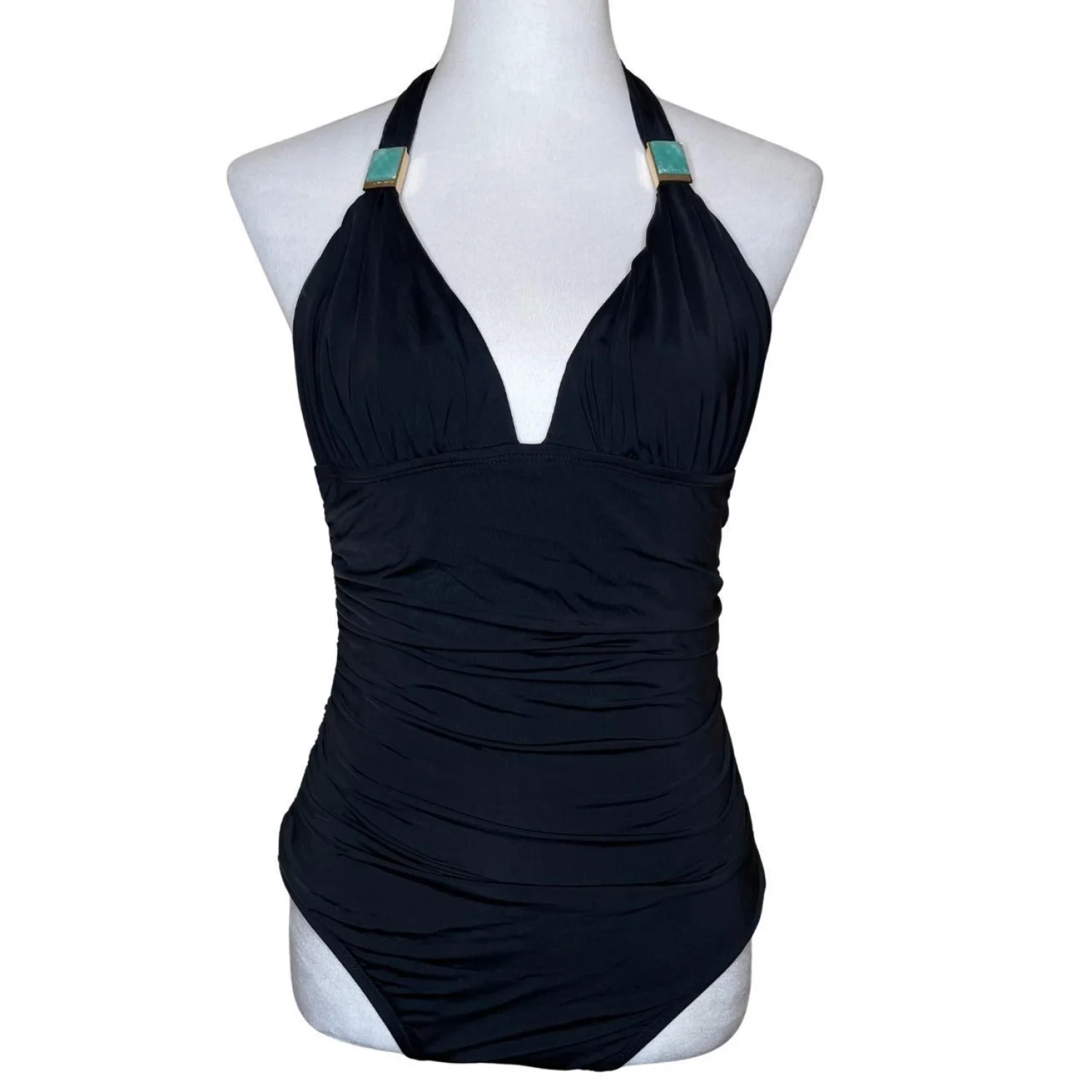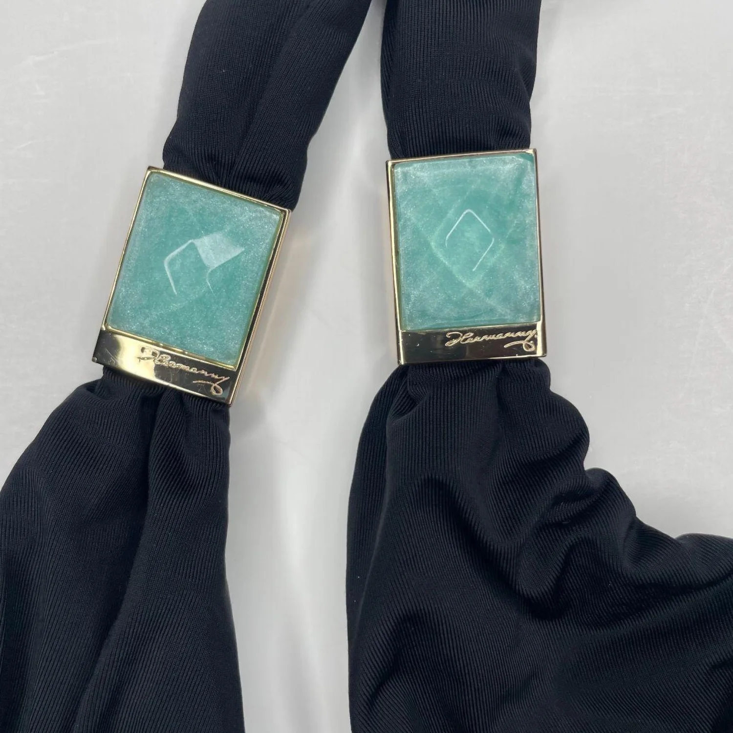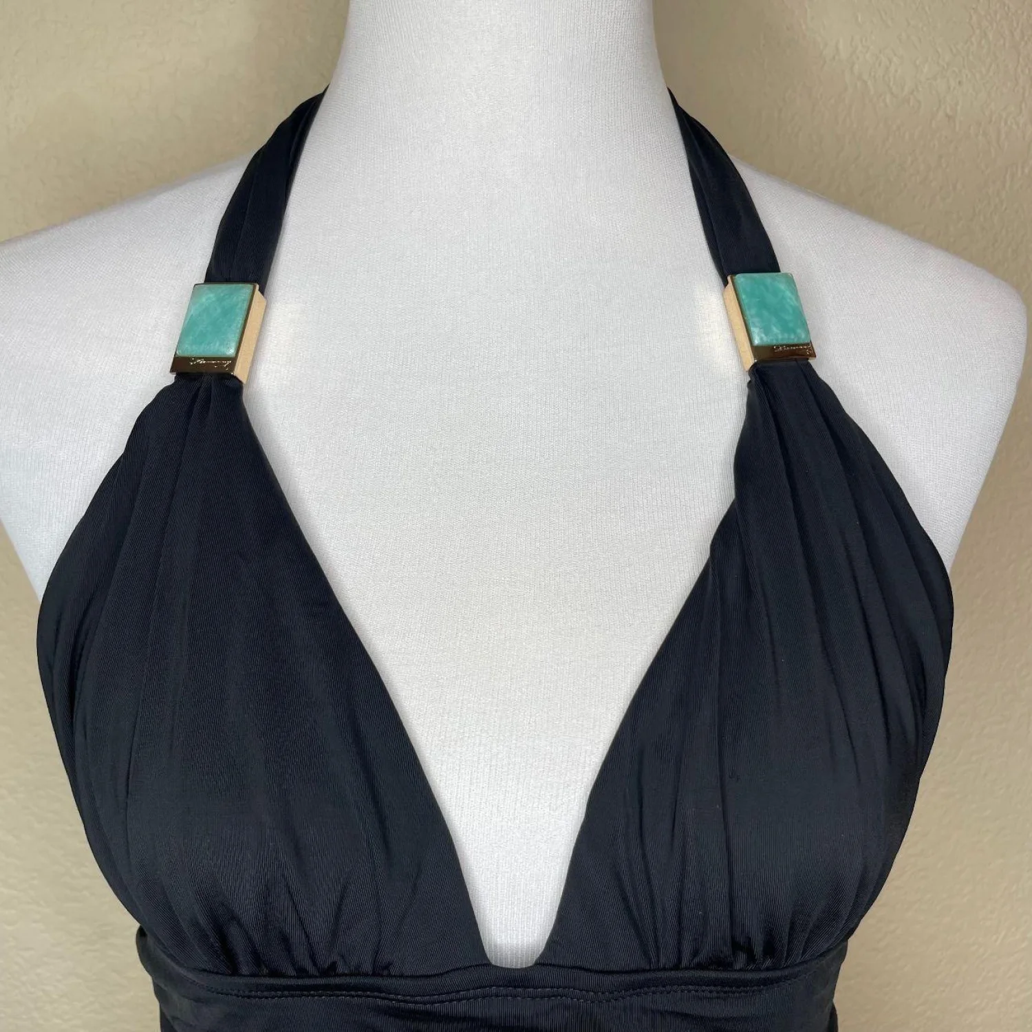 ViX Paula Hermanny Black One Piece Swimsuit Turquoise Stone Accent Halter Sz 12