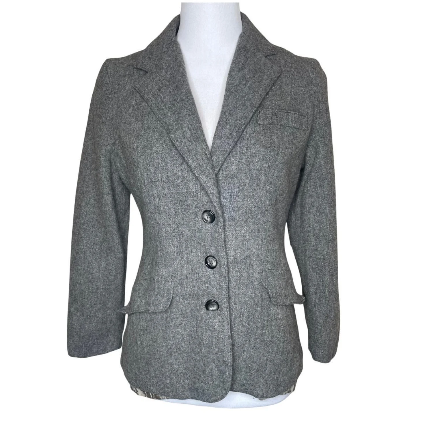 Vtg 60s 70s Bronson of California Gray Wool Tweed Blazer Jacket 13/14 Preppy