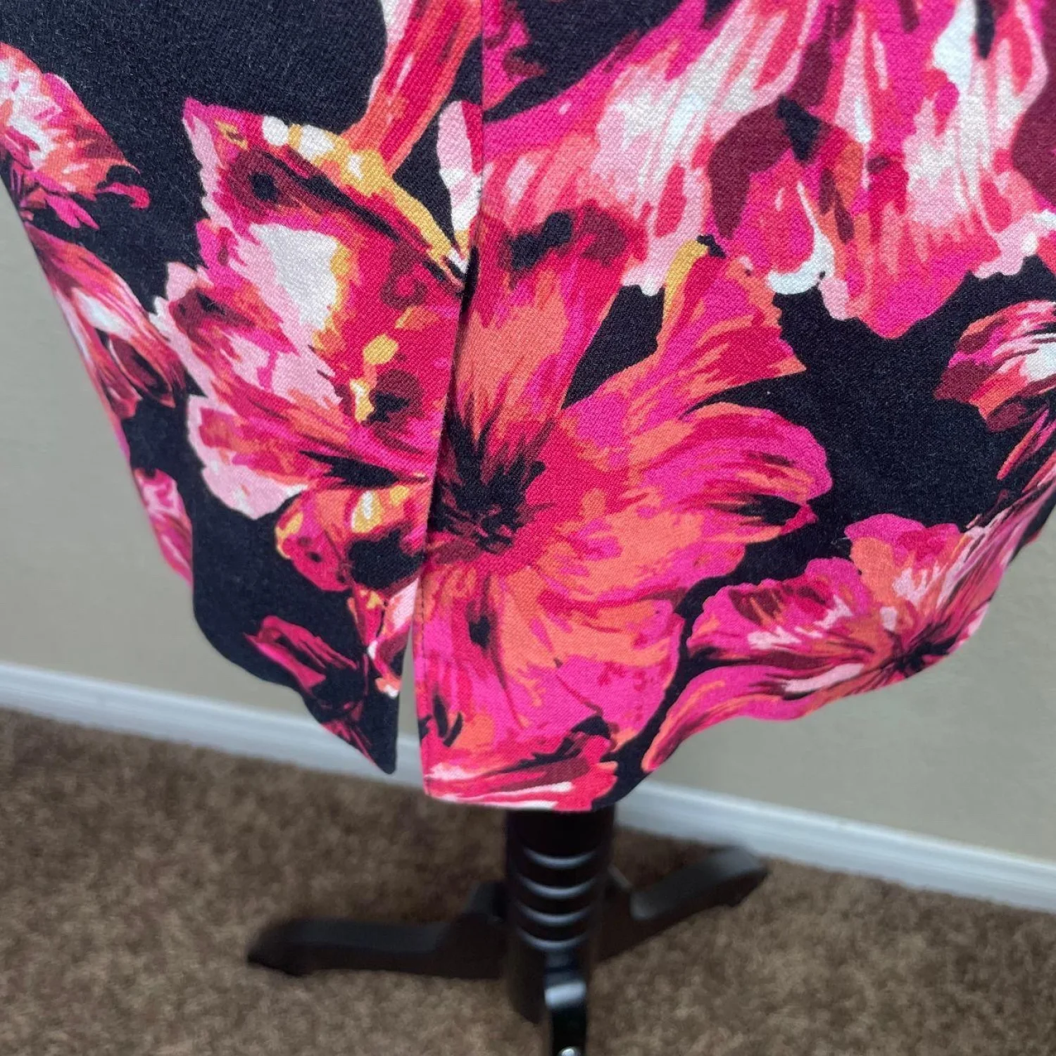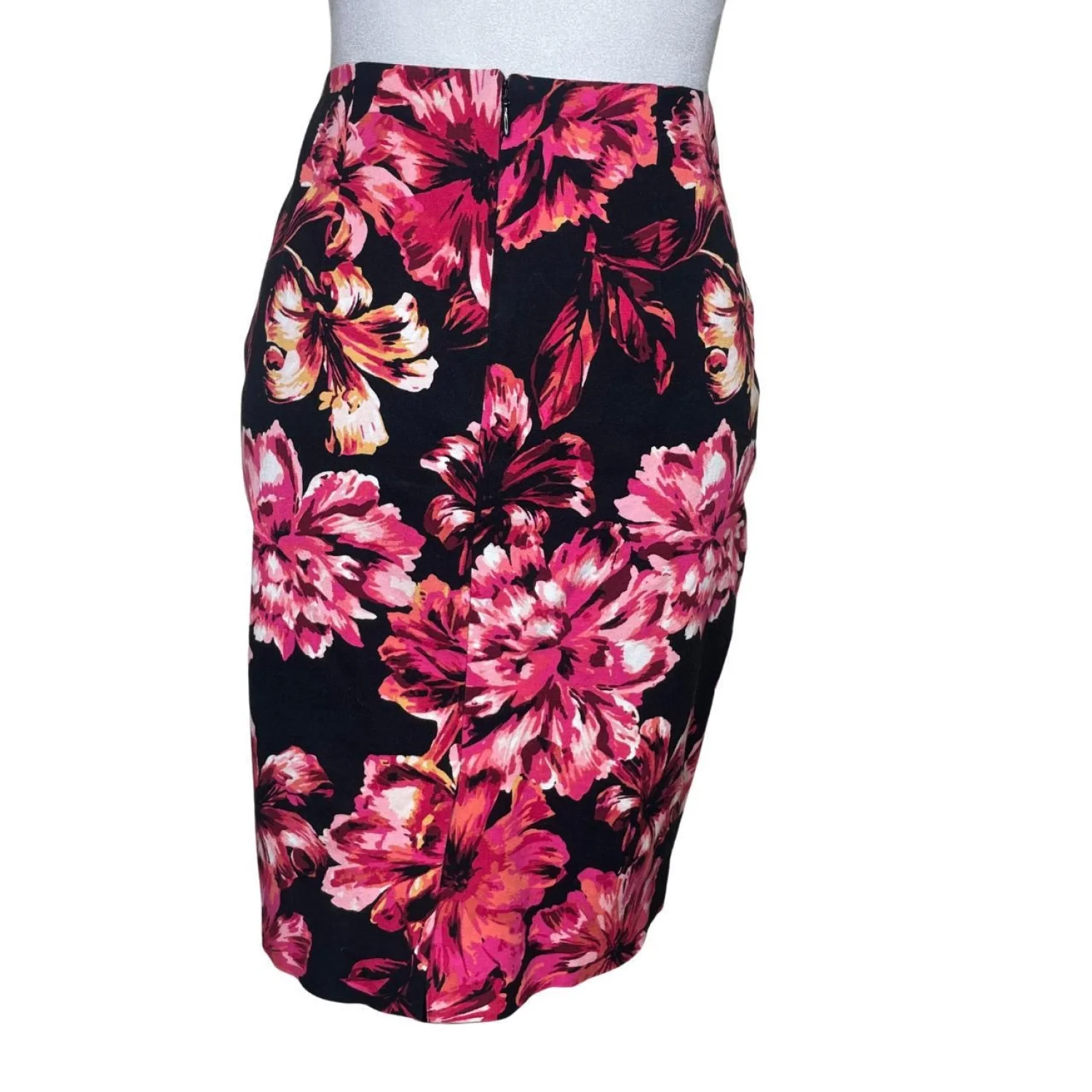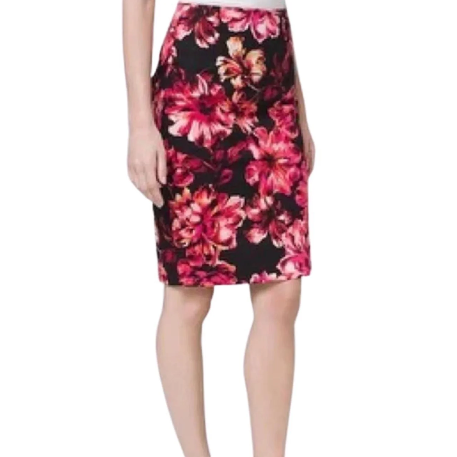 White House Black Market Women's Black Floral Slit Pencil Skirt Sz 2 Career