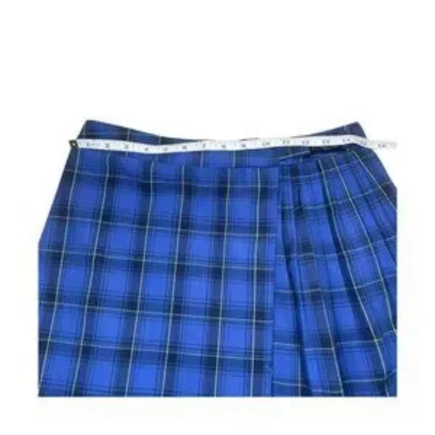 Wild Fable Cyber Grunge Blue Plaid Buckle Pleated Mini Skirt Medium Features: This Wild Fable mini brings a sharp cyber-grunge edge with a flat front wrap panel and a functional side release buckle. The crisp pleating at the back adds structural volume, while the elasticated rear waistband ensures a locked-in fit. It’s a medium-weight polyester-rayon blend that holds its shape without feeling stiff. • Style Profile: cyber grunge, dark academia, alt fashion, techwear, mall goth, 90s revival, street style, schoolgirl core, y2k aesthetic, subculture • Flaws: No Holes, stains, or tears • Please see photos for measurements (in inches). Waist: 15' Length: 16' • Happy to answer your questions! Super Fast Shipper!