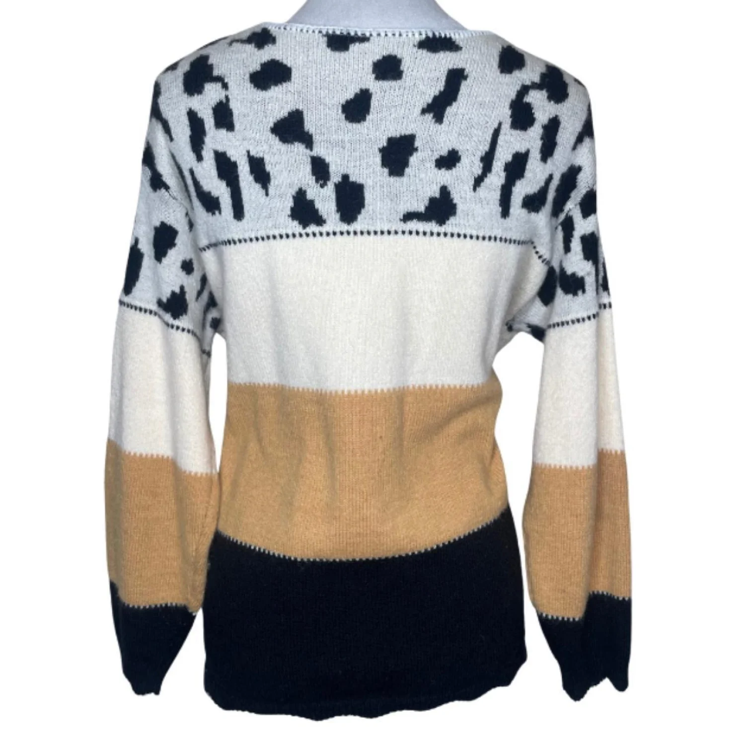 Offers Welcomed🎉 This multicolor sweater features a classic V-neckline and a pullover style for easy wear. Perfect for layering or wearing on its own, this sweater is both fashionable and comfortable, ideal for staying warm in the colder months. Features: • Style Profile: Winter, Fall, Spring, Layers, Outdoors, Closet Staple, teacher mature casual office eclectic wacky • Flaws: No Holes, stains, or tears • Please see the photos for measurements (in inches). PTP: 19' Length: 25' Sleeve Length: 18' Happy to answer your questions! Super Fast Shipper!