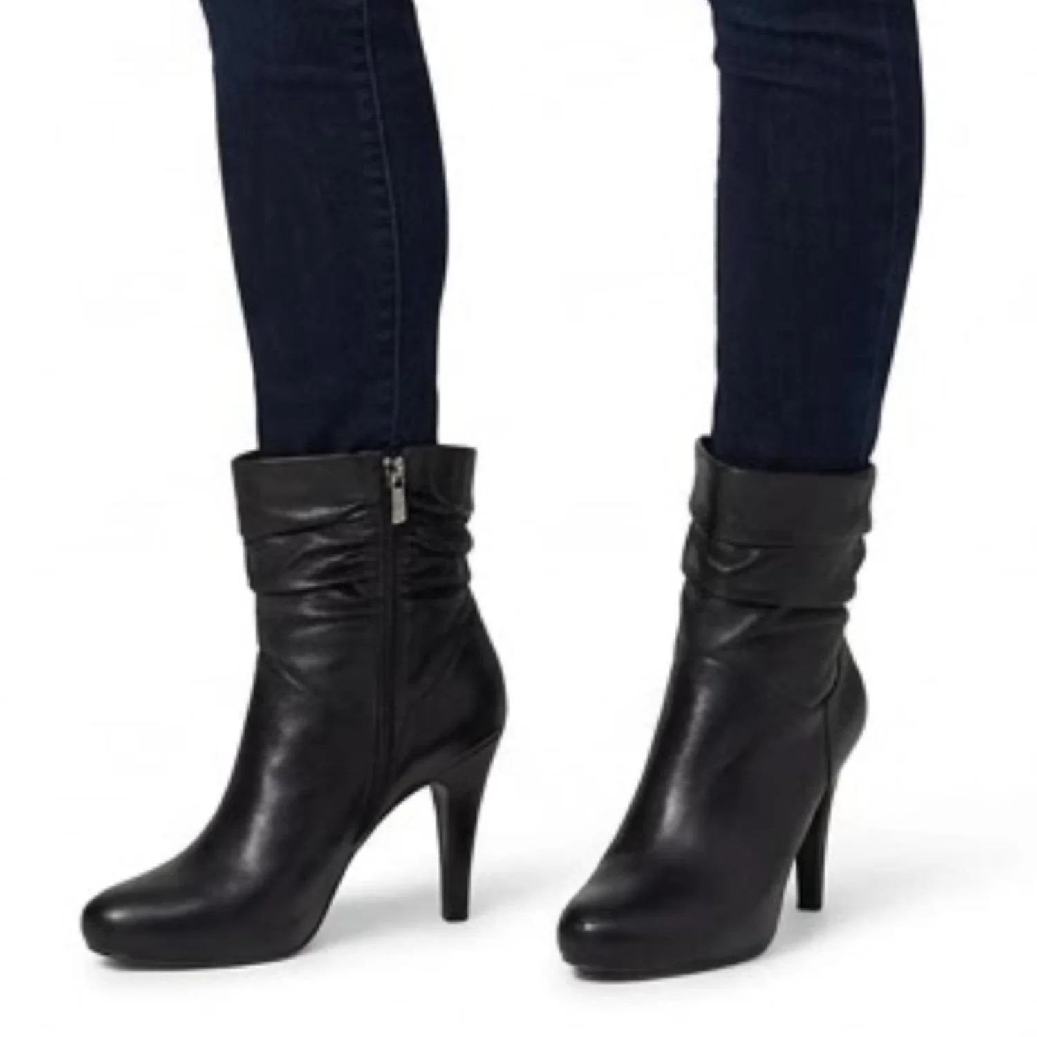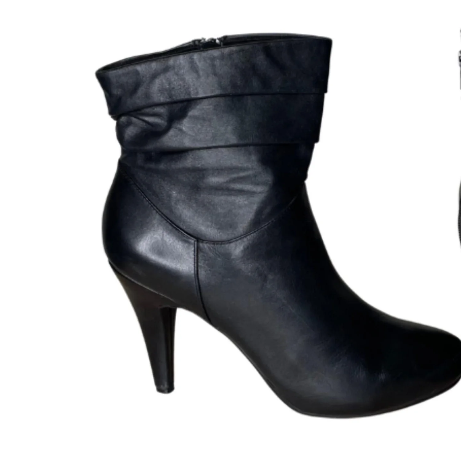Worthington Leather Slouchy Stiletto Ankle Boots Black Pointed Toe Office 9.5M