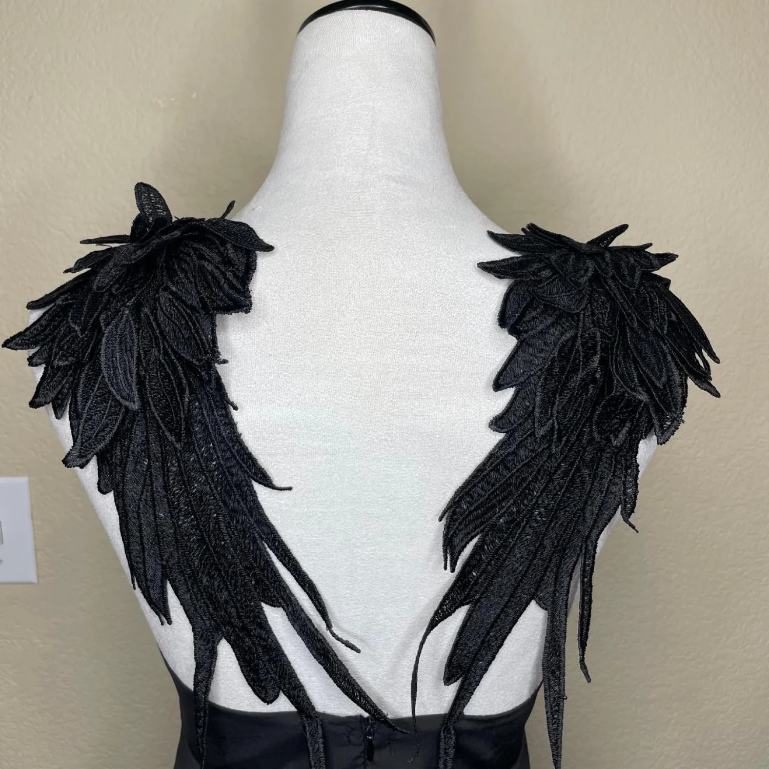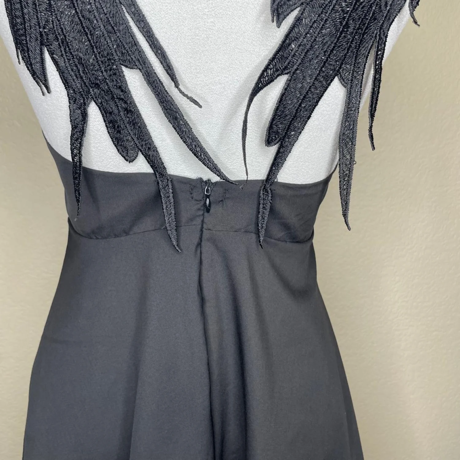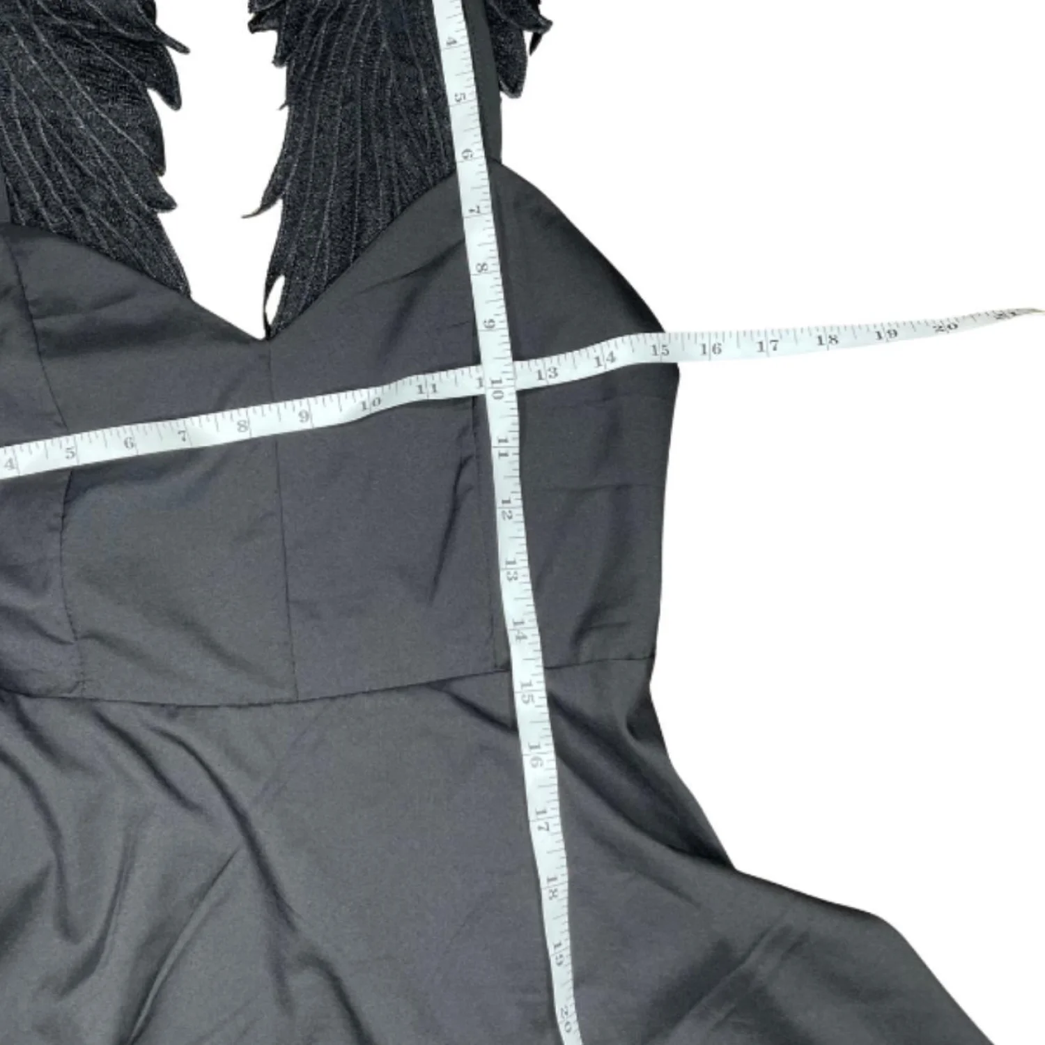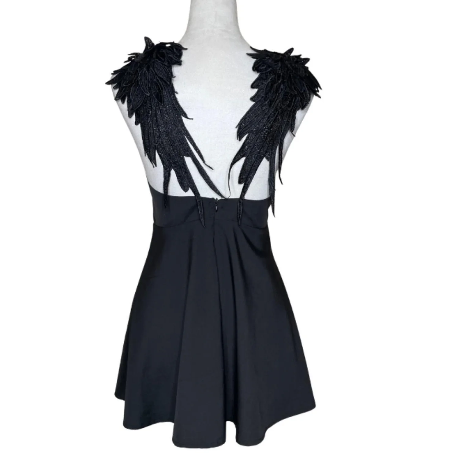 XYS Women's Black Spaghetti Strap Wing Appliques Skater Dress Dark Fairy M