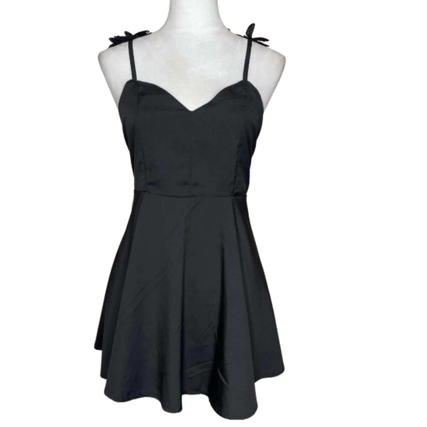 XYS Women's Black Spaghetti Strap Wing Appliques Skater Dress Dark Fairy M A dark fairycore-inspired piece perfect for formal and party occasions. This short dress features a sweetheart neckline, zip closure, and strappy sleeves. The wing appliques add a touch of fairy character to the dress, making it a unique and eye-catching choice for women who love dark and Gothic styles. Ideal for all seasons, this dress is designed for those who want to make a statement with their fashion choices. Features: • Style Profile: Goth, Dark Cottagecore, Dark Fairy, Feminine, Grunge, Whimsigoth Edgy, Sexy, Event Dark floral • Flaws: No Holes, stains, or tears • Please see the photos for measurements (in inches). PTP: 15.5' Length: 29.5' Happy to answer your questions! Super Fast Shipper! Bundle items for discounts!