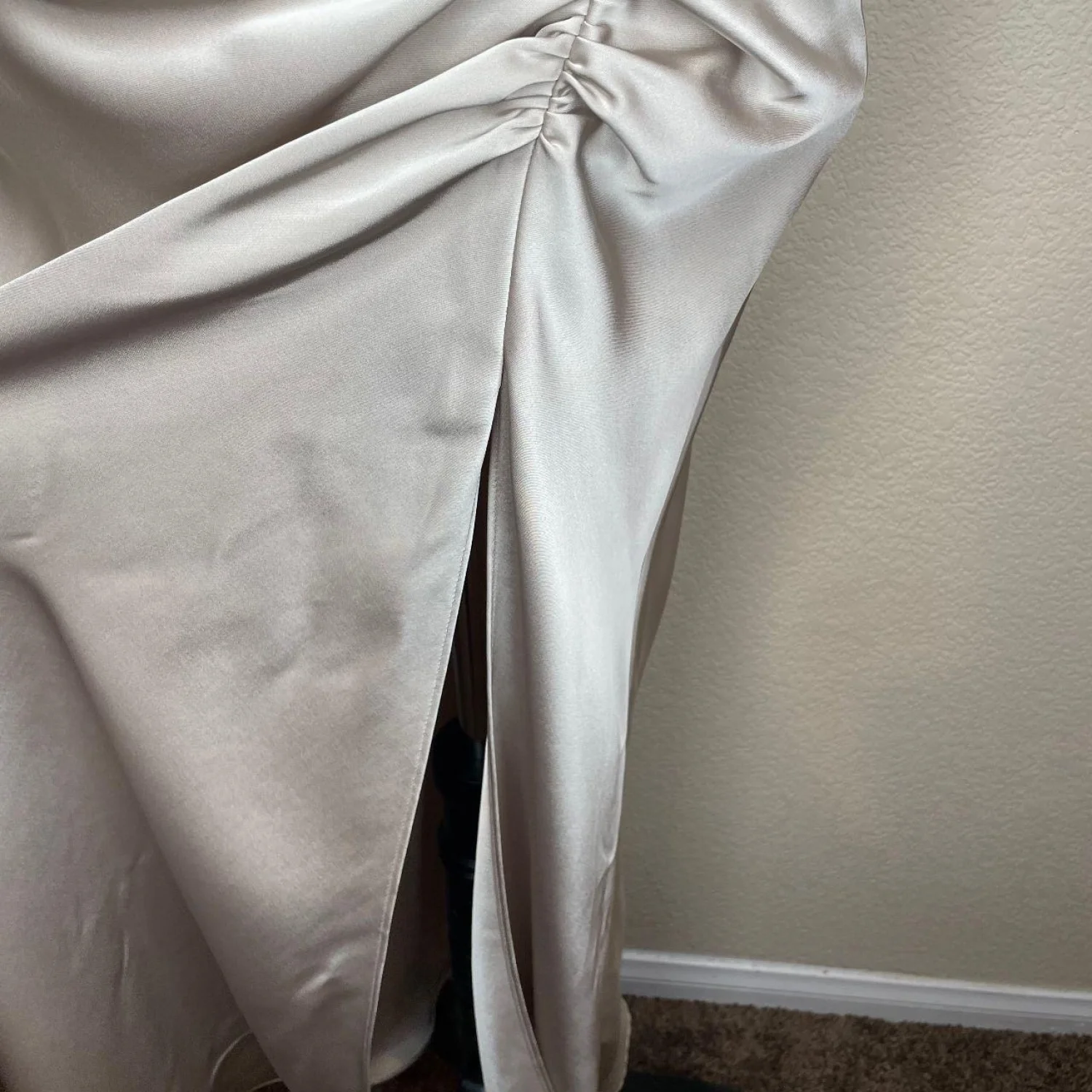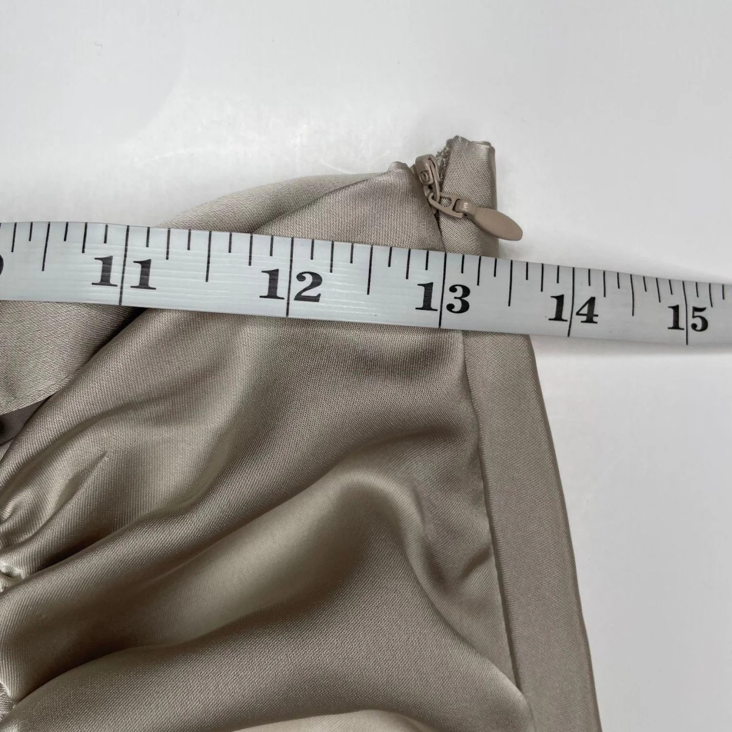 Offers Welcomed🎉 Features: This versatile midi/maxi skirt is a sleek wardrobe staple perfect for dressing up or down. Pair it with a chunky knit sweater and boots for a high-low contrast look, or with a bodysuit and heels for a wedding, cocktail event, or date night. The asymmetrical ruching creates a flattering, figure-hugging silhouette. • Style Profile: satin, silk, slip, cocktail, party, wedding guest, date night, going out, streetwear, elegant, luxurious, minimalist, minimal, chic, sophisticated, neutral, champagne, beige, cream, light brown, gold, y2k, 90s, bodycon, high fashion, euro fashion, trending, blogger favorite, evening wear • Flaws: No Holes, stains, or tears (Excellent pre-owned condition) • All measurements are approximate Waist: 13' Length: 33.5-36' Happy to answer your questions! Super Fast Shipper!
