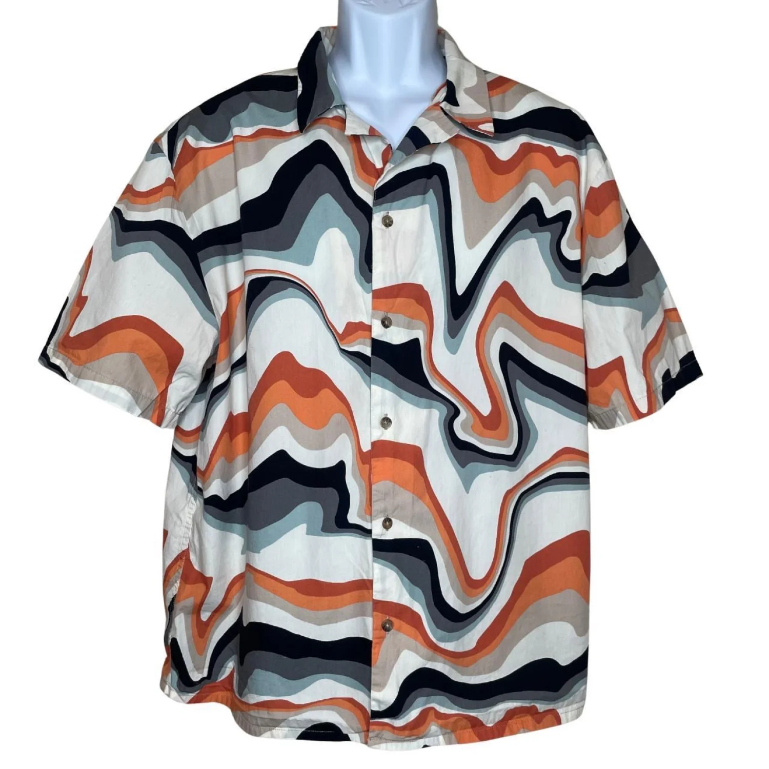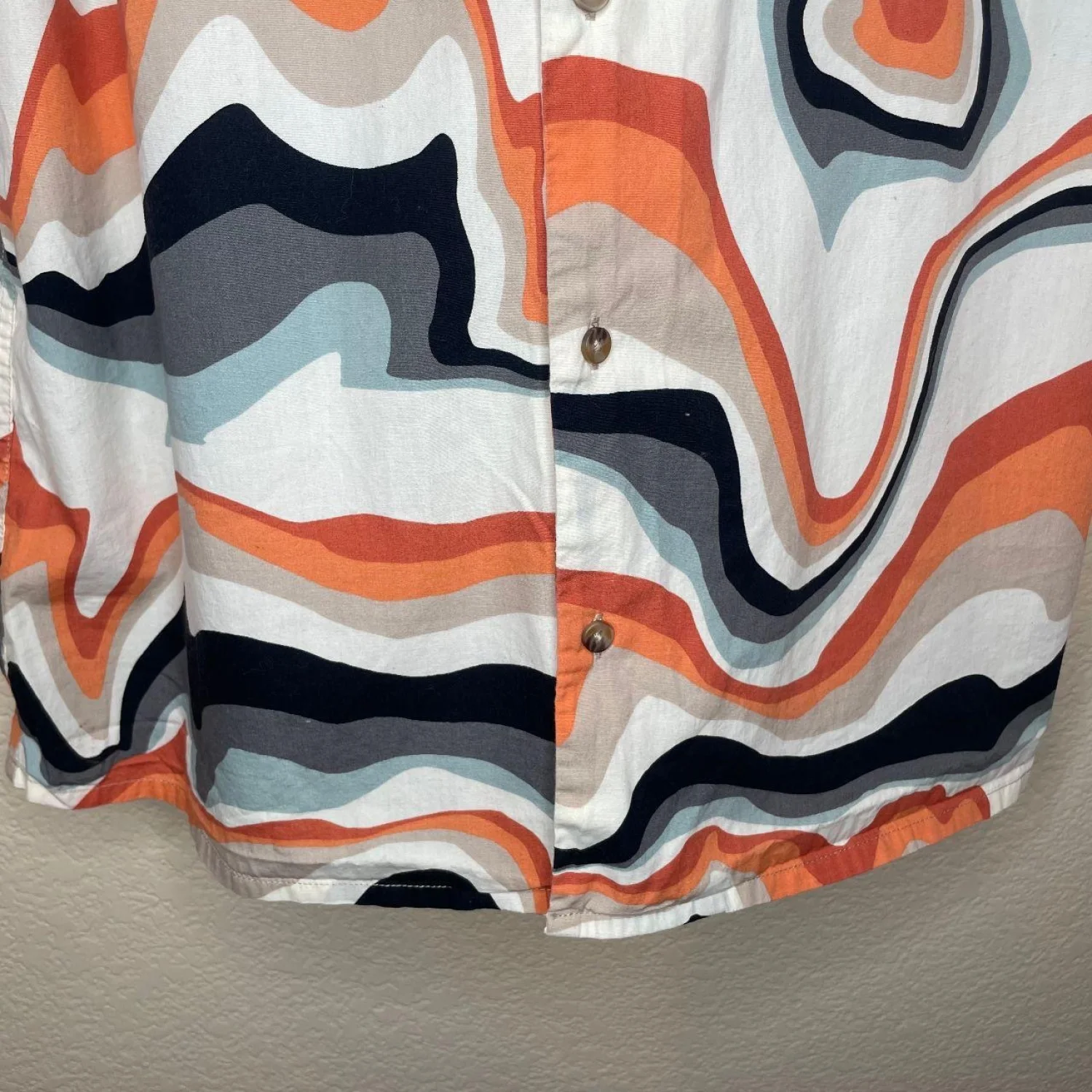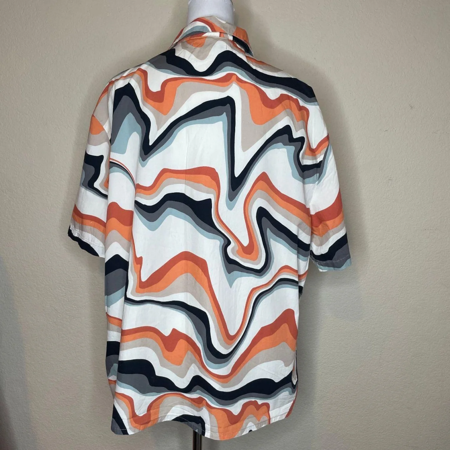 Offers Welcomed🎉 Features:The color palette—including burnt orange, black, grey, and white—gives it a cool retro 70s or psychedelic vibe. The relaxed fit and camp (Cuban) collar make it perfect for vacation wear, festivals, or adding flair to your street style. • Style Profile: #retro #psychedelic #70s #streetwear #abstract • Flaws: No Holes, stains, or tears (Excellent pre-owned condition) • All measurements are approximate PTP: 23' Length: 27.5' Happy to answer your questions! Super Fast Shipper!