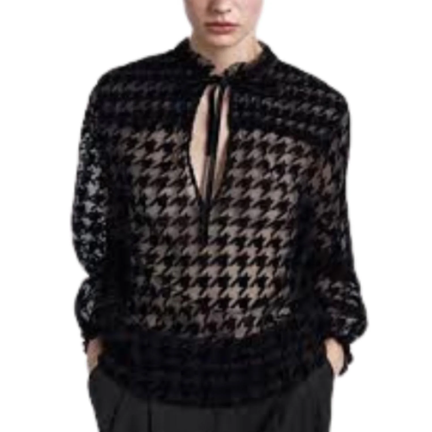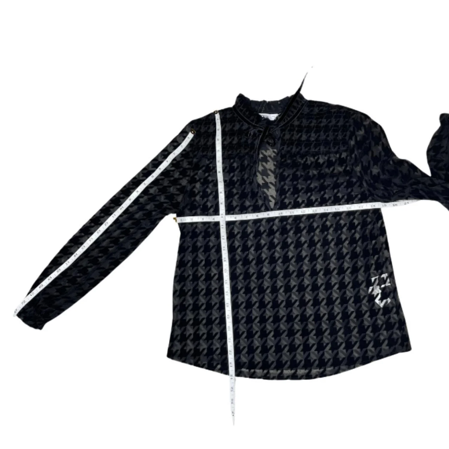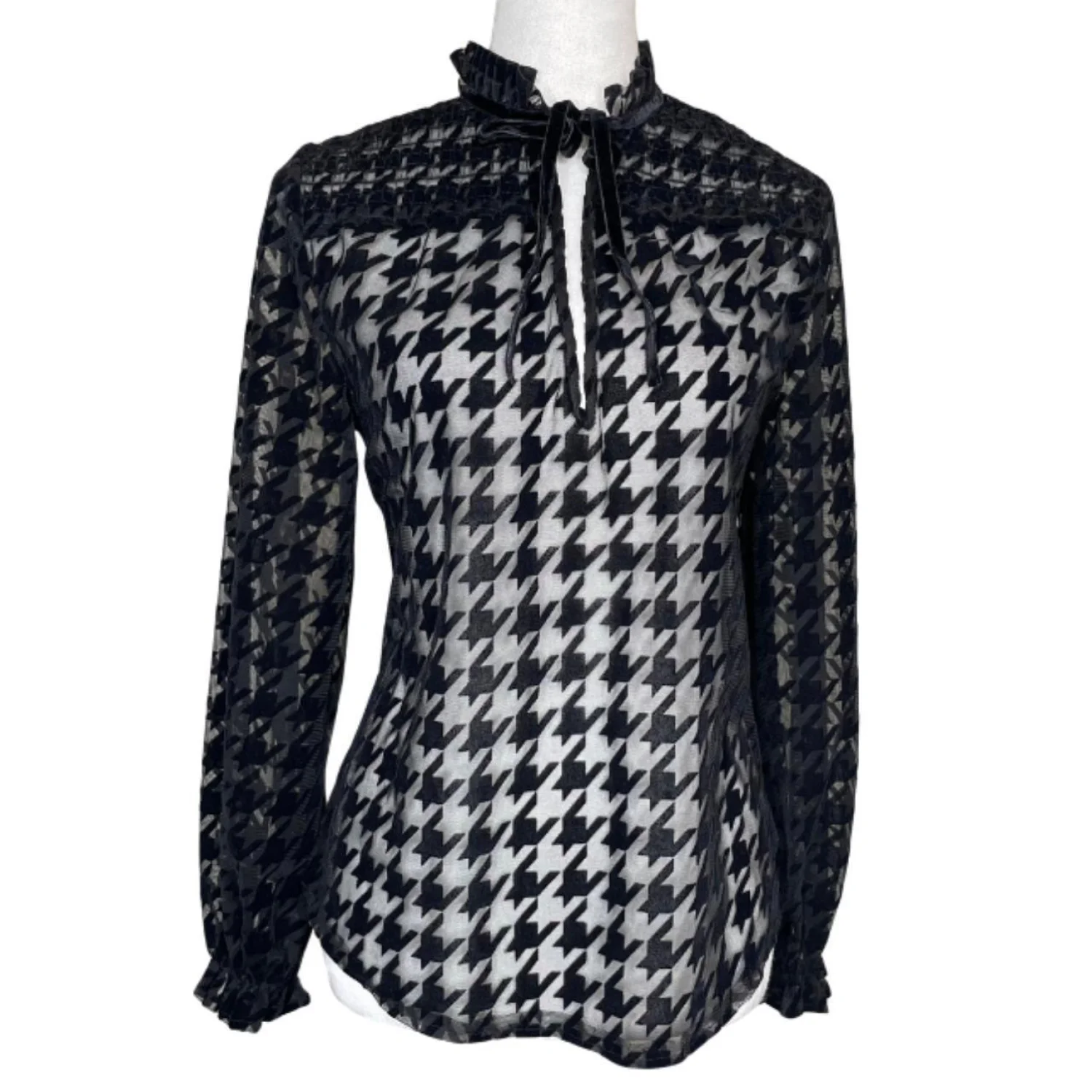 ZARA Small Black Houndstooth Sheer Flocking Button-Down Blouse Top