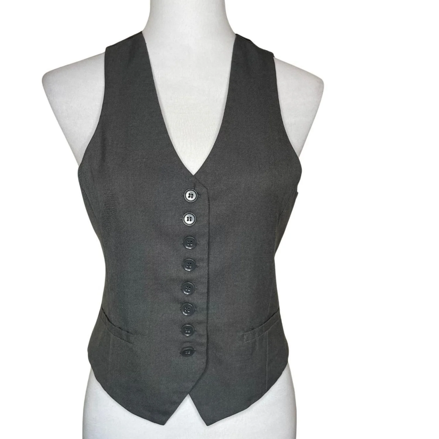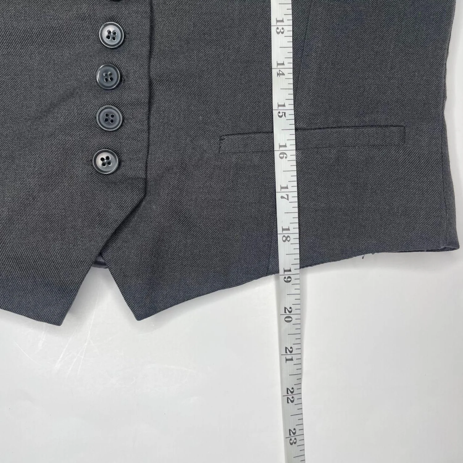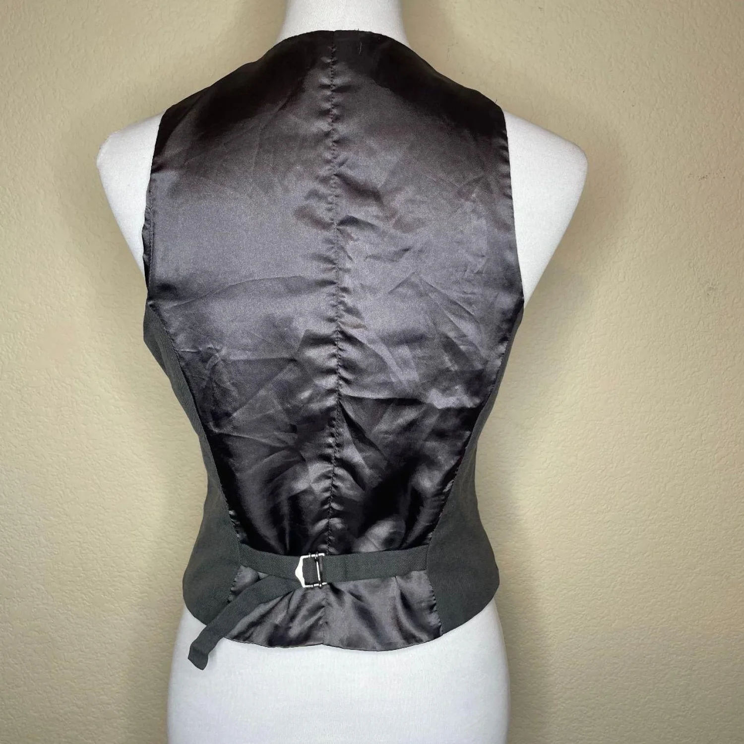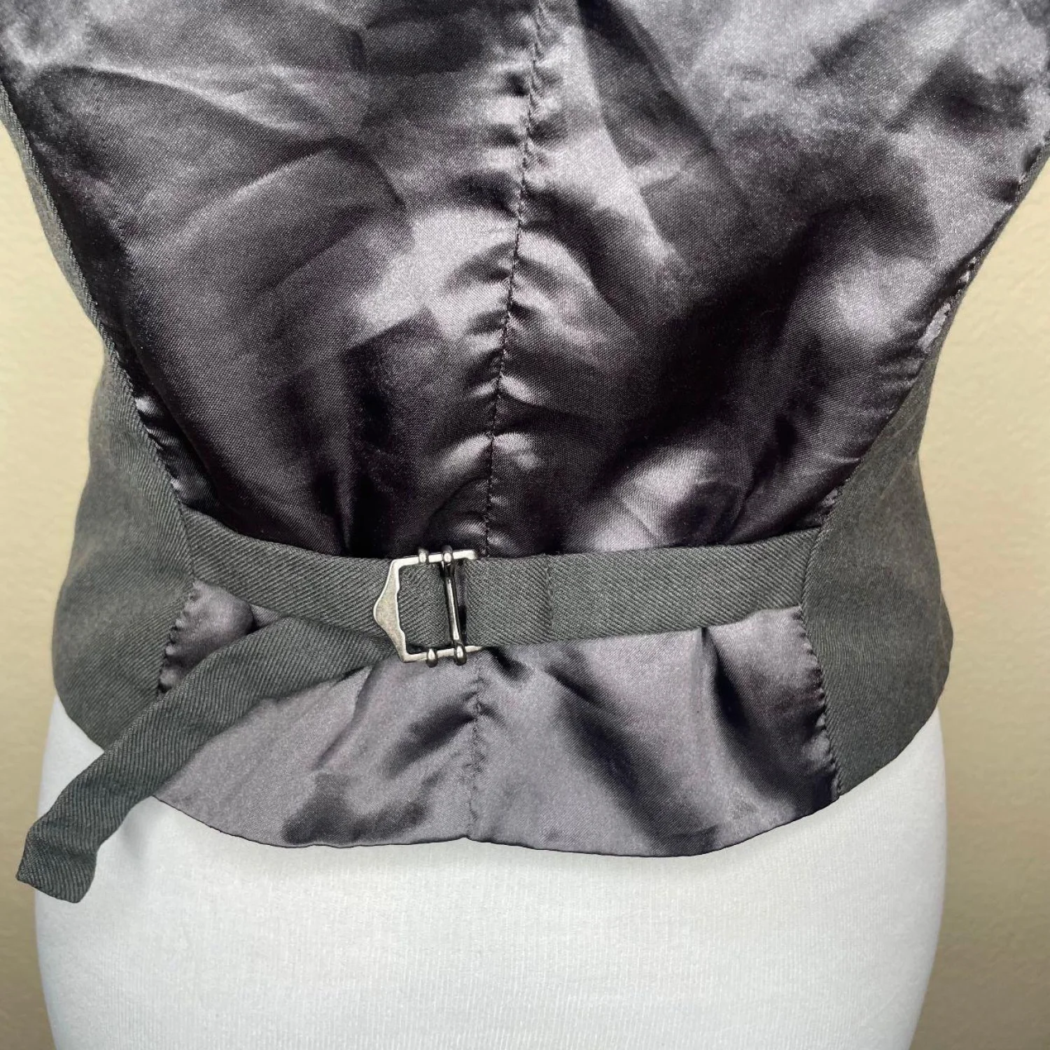 Zenana Outfitters Dark Academia Charcoal Gray Tailored Button Up Waistcoat Vest Medium Features: A sharp V-neckline and a dramatic seven-button placket that creates a structured, cinched silhouette. The back is finished with a tonal satin lining and an adjustable cinch buckle to customize the taper. Built with faux welt pockets and a clean, pointed hem, this piece brings a disciplined, "Corpcore" edge to any kit. • Style Profile: dark academia, corpcore, whimsical goth, preppy, minimalist, tailored, waistcoat, 90s office, light academia, business casual, gray vest, coquette, grunge, dark minimal, scholar style • Flaws: No Holes, stains, or tears (Excellent pre-owned condition) • All measurements are approximate PTP: 16' Length: 19-20.5' Happy to answer your questions! Super Fast Shipper!