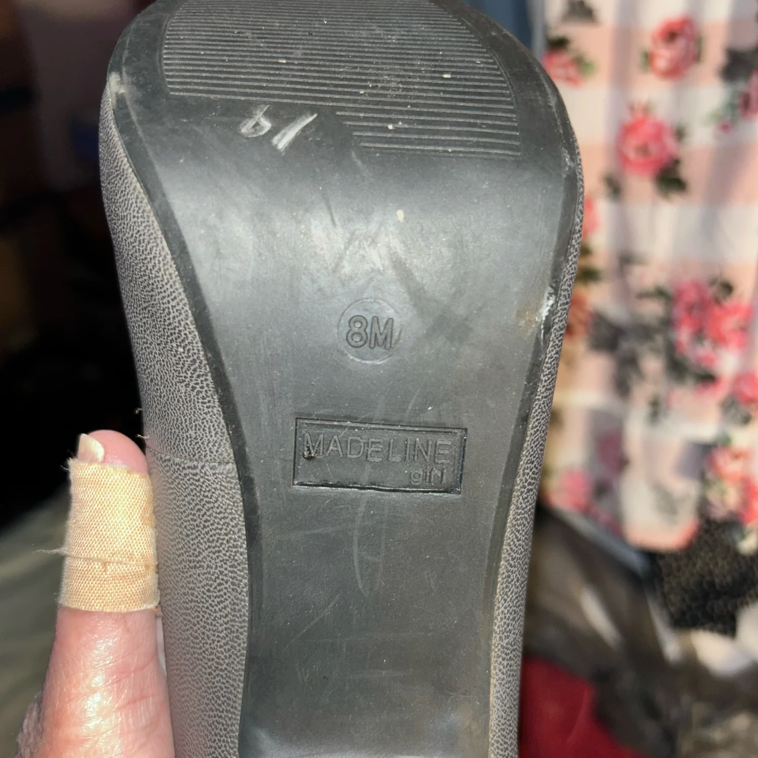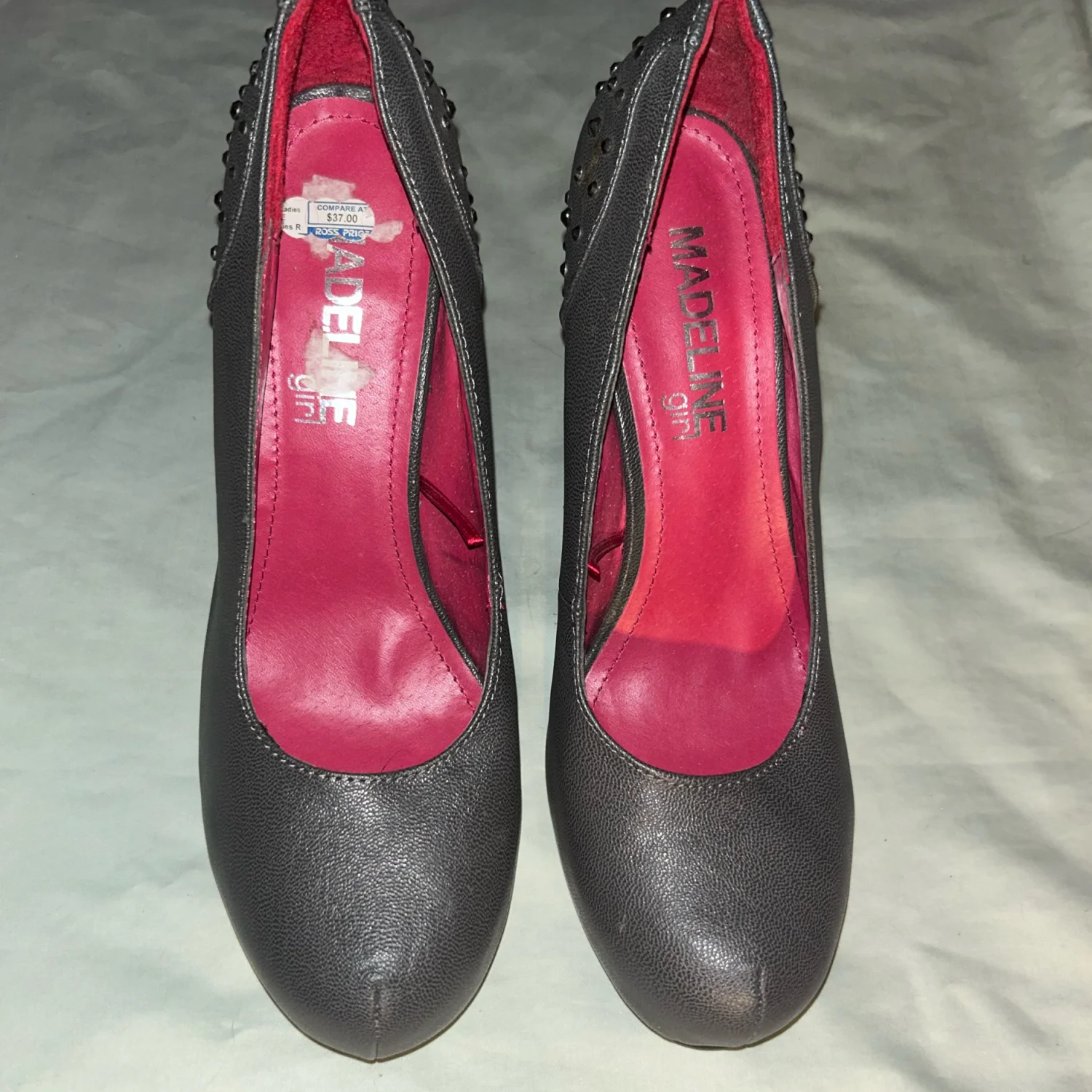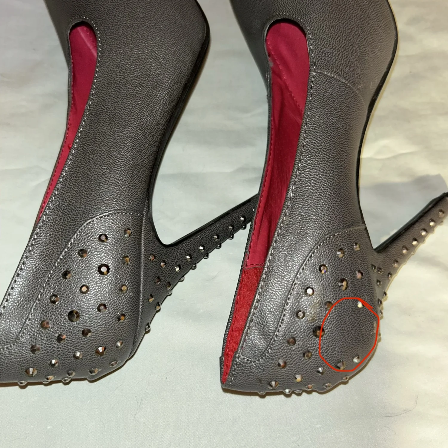 Madeline gray high heel shoes in a size 8. Rhinestones on the heels. I bought these to try and learn how to walk in heels, yeah that’s not happening! Only worn inside. Please see all pictures, zoom in and ask any questions before you purchase as these are sold as is with no returns. We are cat friendly. All proceeds go towards my husbands medical expenses. Thank you for your support.